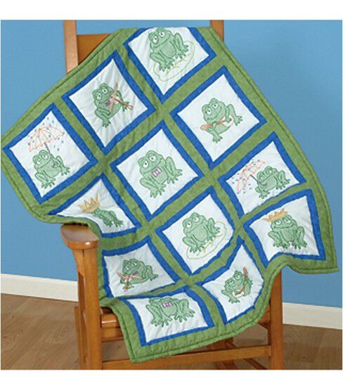• Jack Dempsey Needle Art 9" Frogs Themed Stamped White Quilt Blocks 12ct