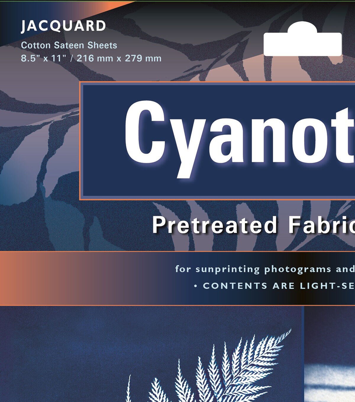 - Jacquard’s high-quality cotton sateen fabric sheets come pre-sensitized for cyanotype and ready to use, making sun printing easier than ever before. Just pull a sheet out of the package, place objects or film on top, expose to light, rinse and dry and you’ll have a rich, detailed print.