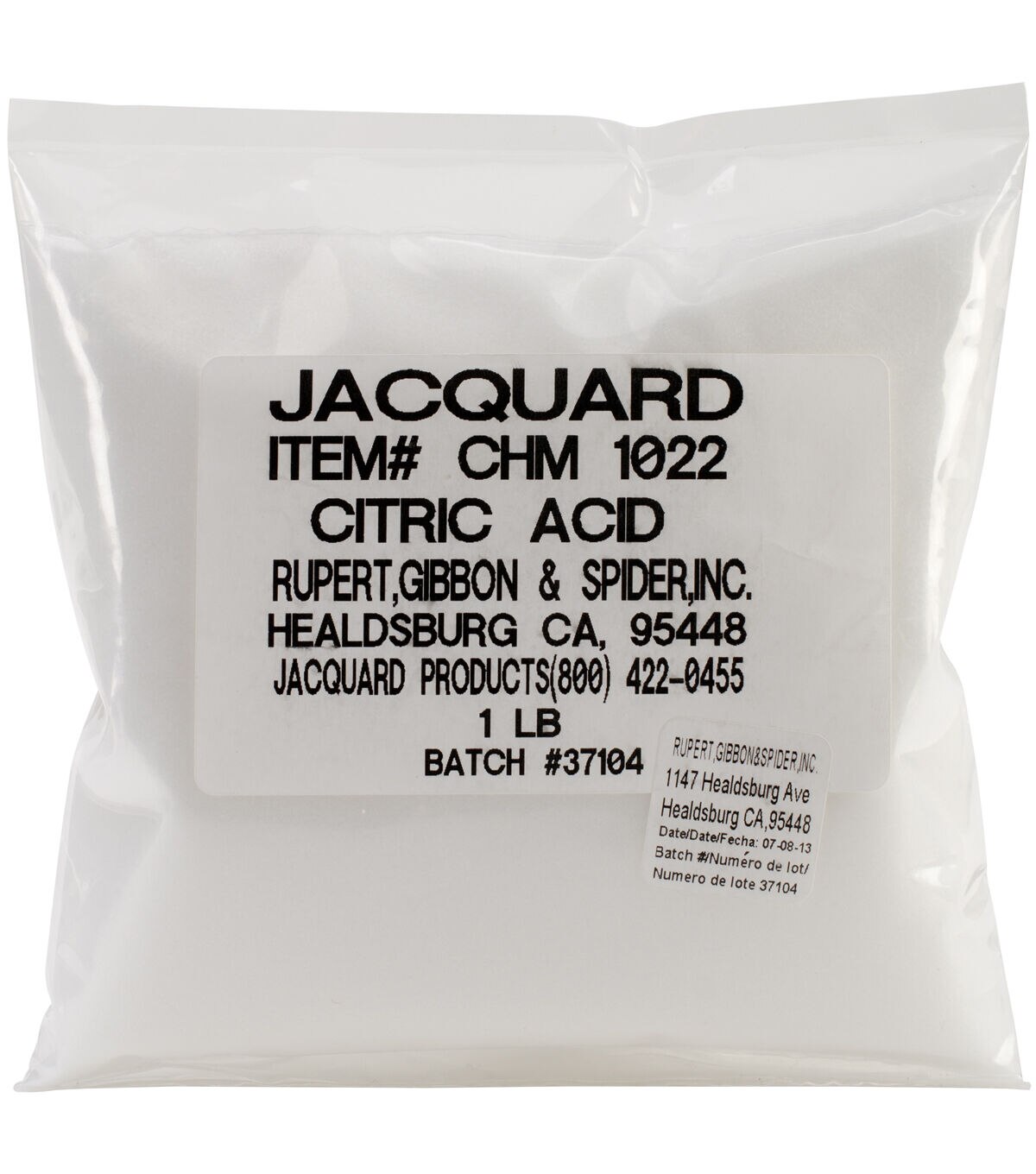 JACQUARD PRODUCTS-Citric Acid. Perfect for using while hand dying fabrics. This package contains one pound of citric acid (double bagged to avoid any leaks). Made in USA.