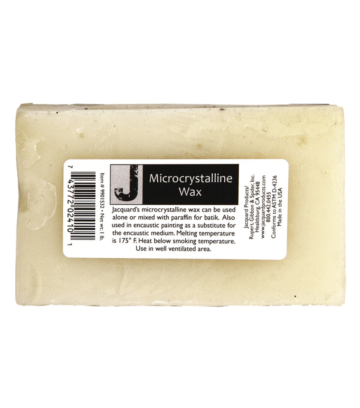 This wax comes in a block and can be used alone or mixed with paraffin for batik. It is also used in encaustic painting as a substitute for the encaustic medium.