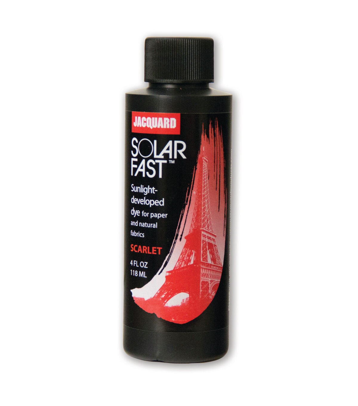 Use this dye to create photograms, continuous tone photographs, shadow prints and ombres on fabric and paper. It is also great for painting, tie-dyeing, screen-printing, stamping or batik. Simply apply to fabric or paper using a brush, sponge or brayer - while still damp, expose the design to sunlight and watch the color magically appear. Place objects on a coated substrate to block development during exposure; any object that casts a shadow will create a pattern. After image exposure, wash out the undeveloped dye with SolarFast Wash and hot water.