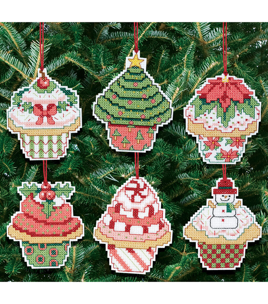 Janlynn Christmas Cupcake Ornaments Counted Cross Stitch Kit 3'' attests to a fun way of creating Christmas decorations. This kit includes 14-count cotton Aida cloth, backing fabric, needle, 6-strand embroidery thread made of carded cotton, detailed instructions and graph. Use the counted cross stitch kit accessories to make six colorful ornaments of about 3 inches each and use them to infuse unique festive appeal.