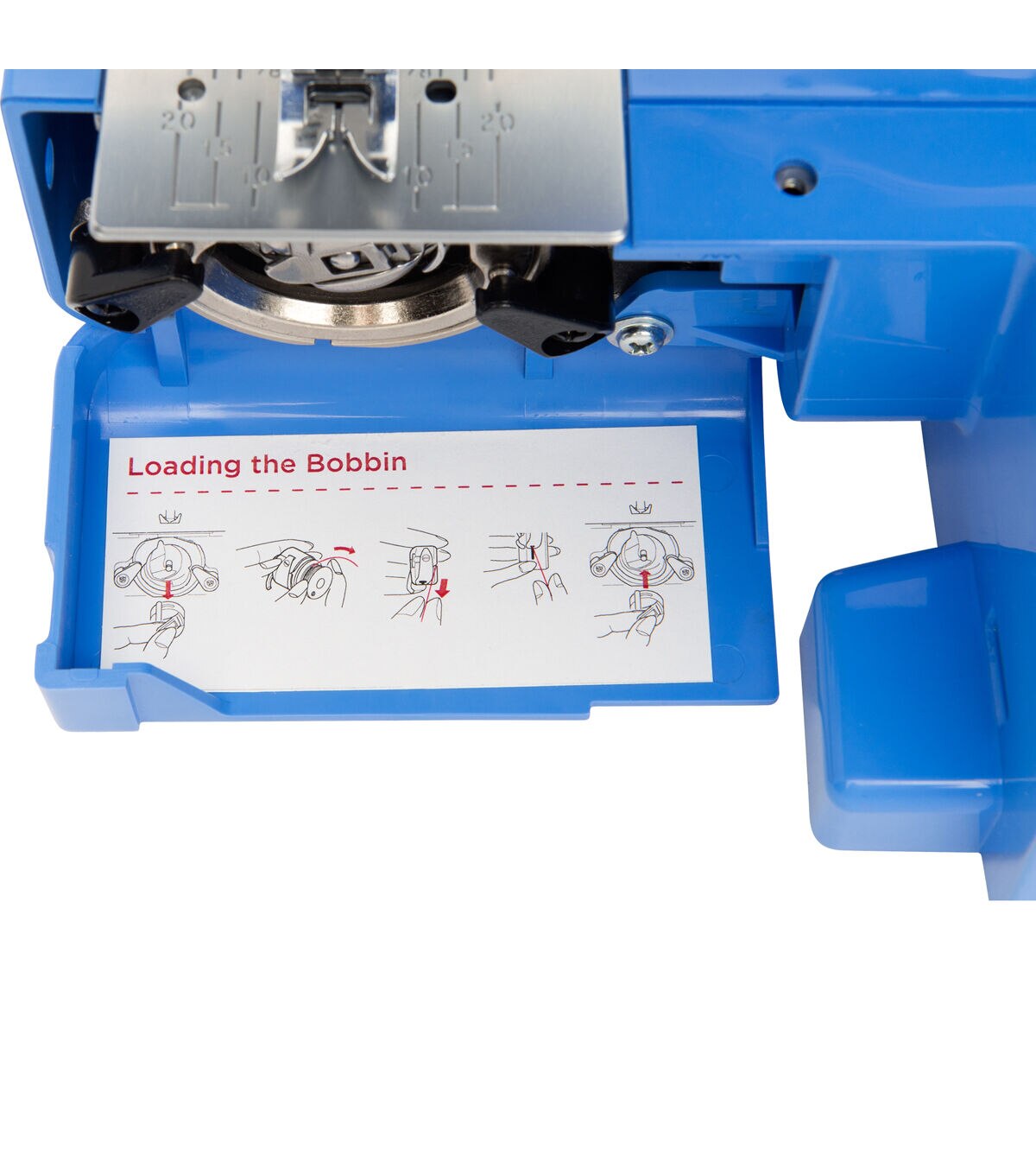- Front Loading Bobbin System with built-in bobbin loading guide found inside the bobbin area