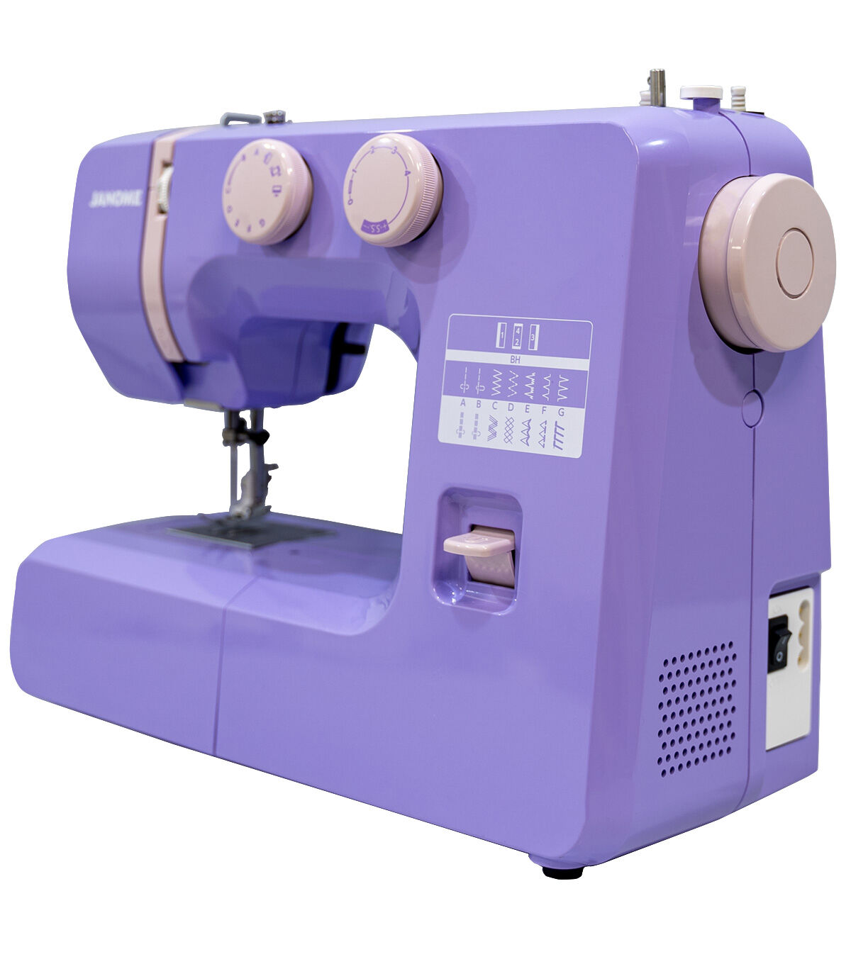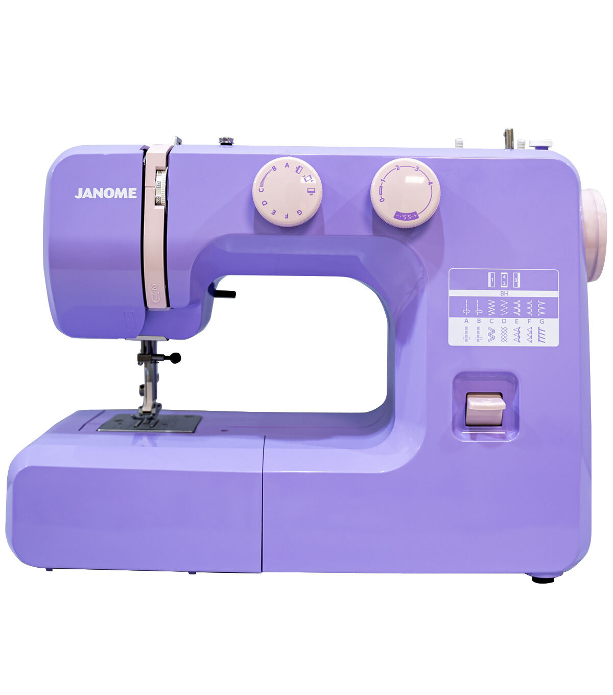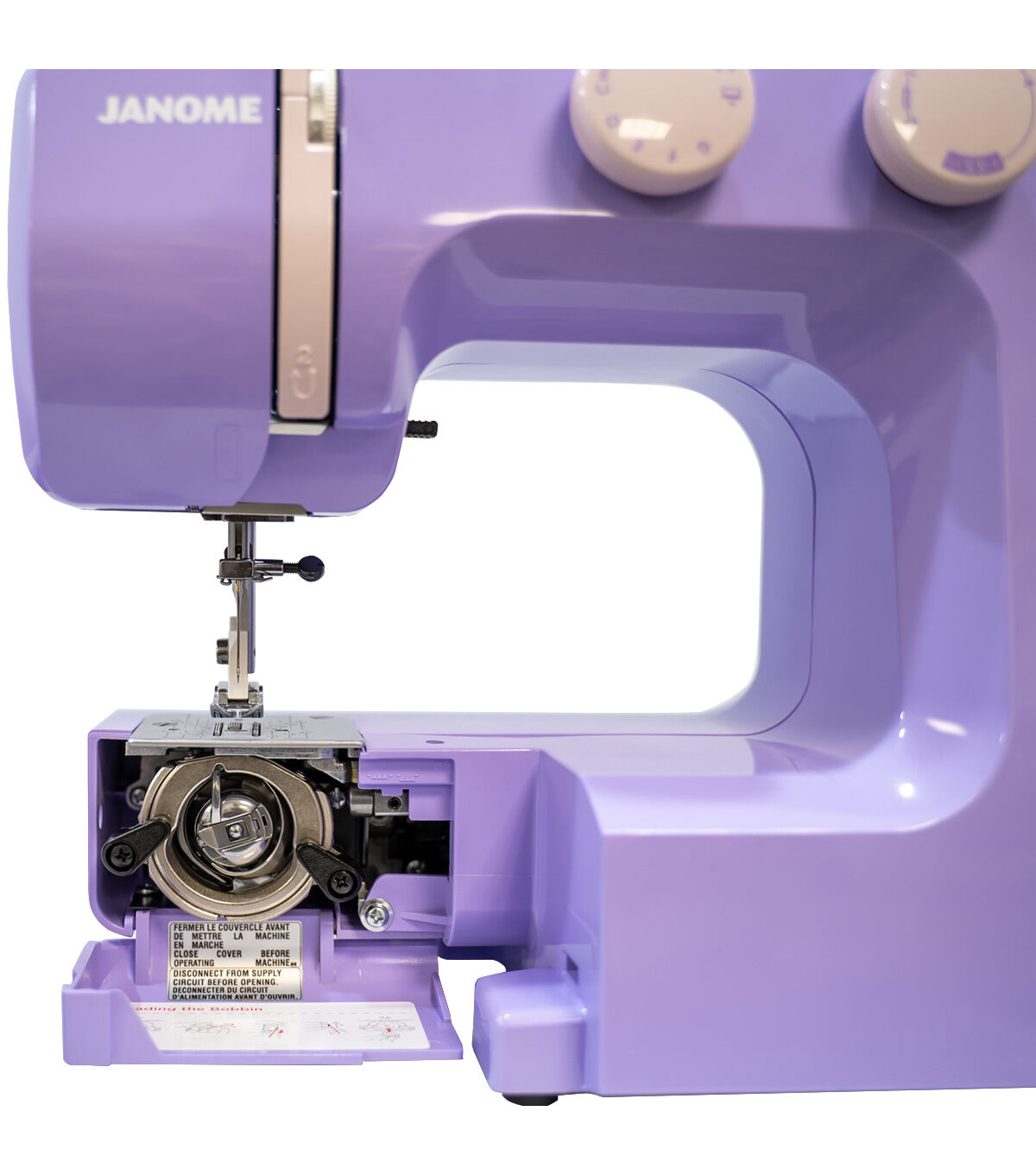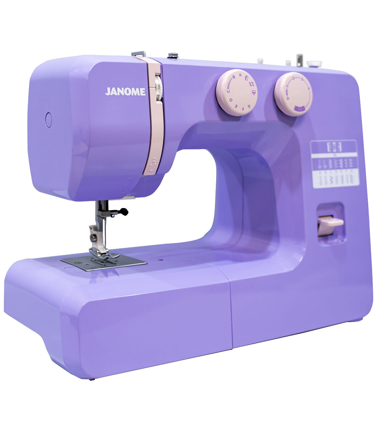 The Janome Lovely Lilac is a quality entry-level model offered at a fantastic price! This mechanical machine features 15 built-in stitches and a four-step buttonhole. Dial pattern selection and stitch width and length adjustment ensure ease of use. Remove the accessory bin to reveal the great free arm feature making it versatile for all types of sewing. Lightweight and easy to use yet built with a full metal internal frame for strength and precision stitching. This is the perfect machine for a beginner as a backup model for someone on the go, the Lovely Lilac color and the price is just right.