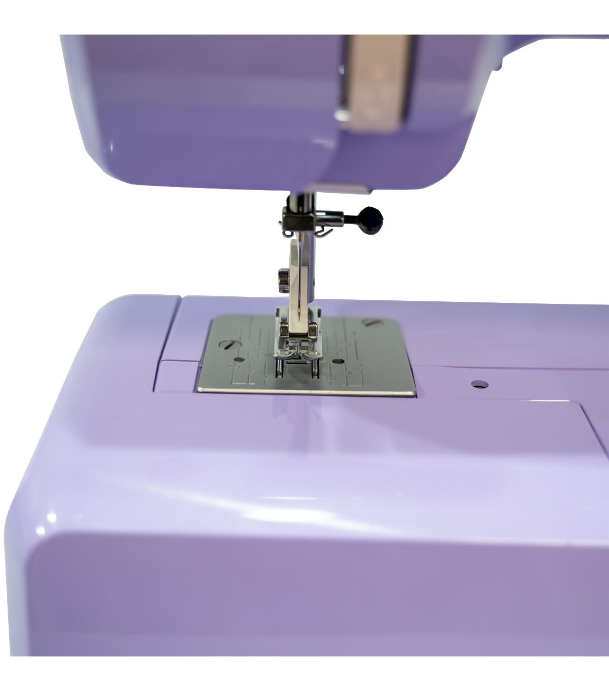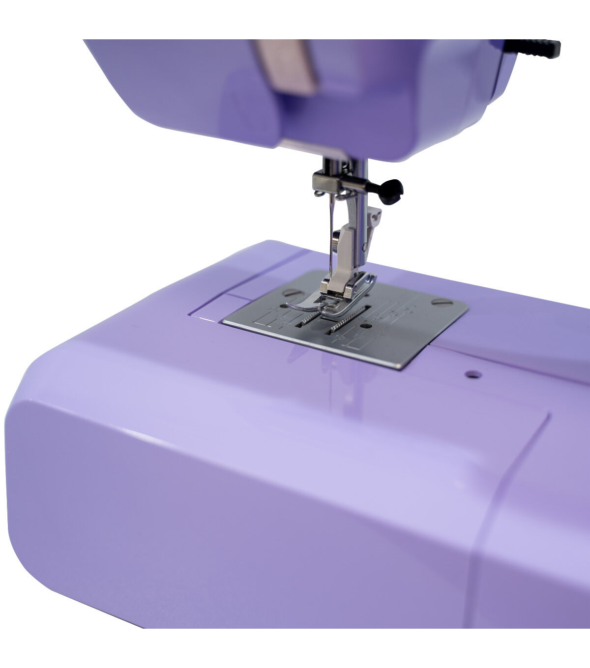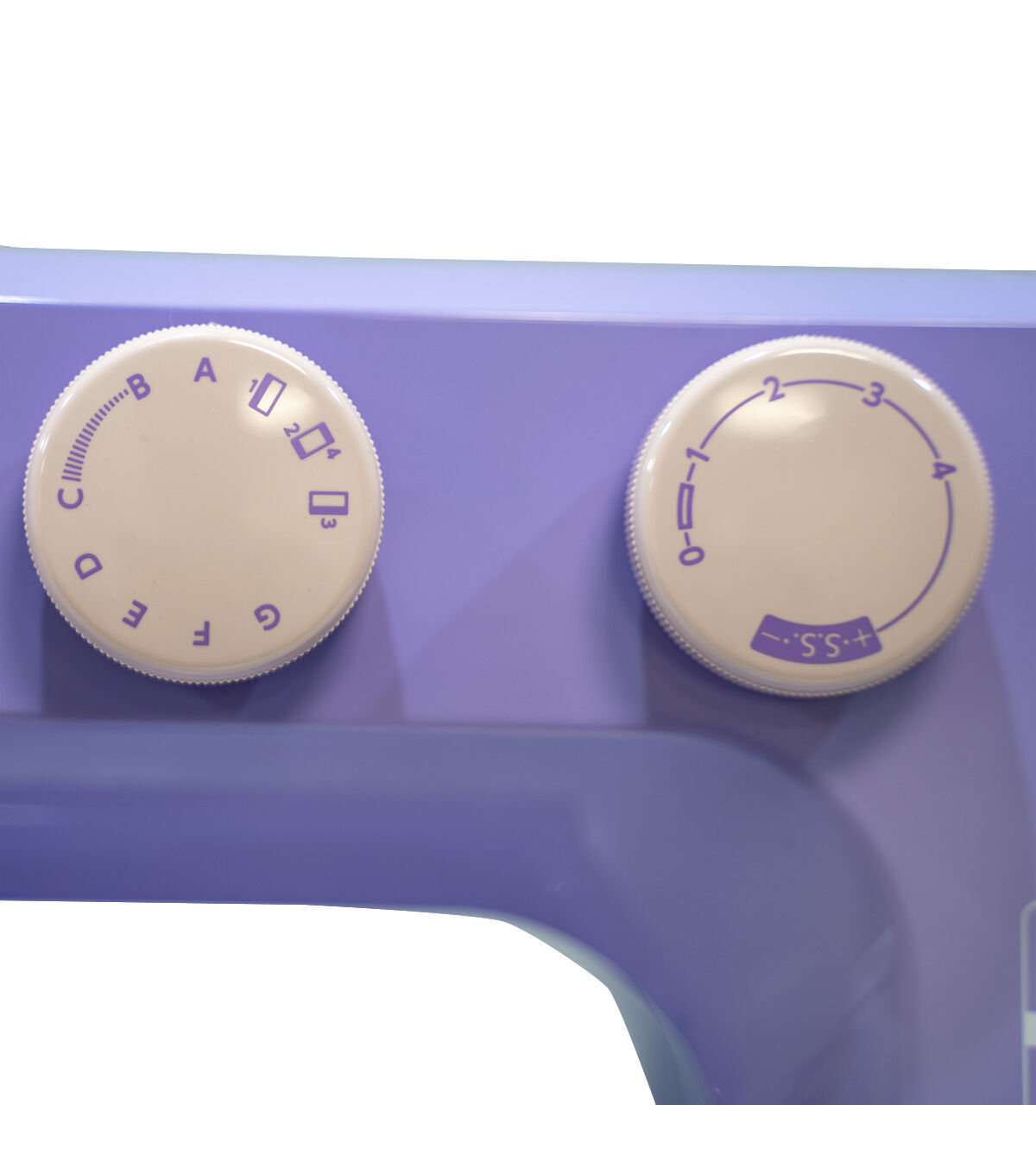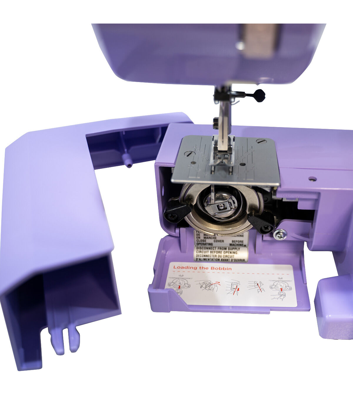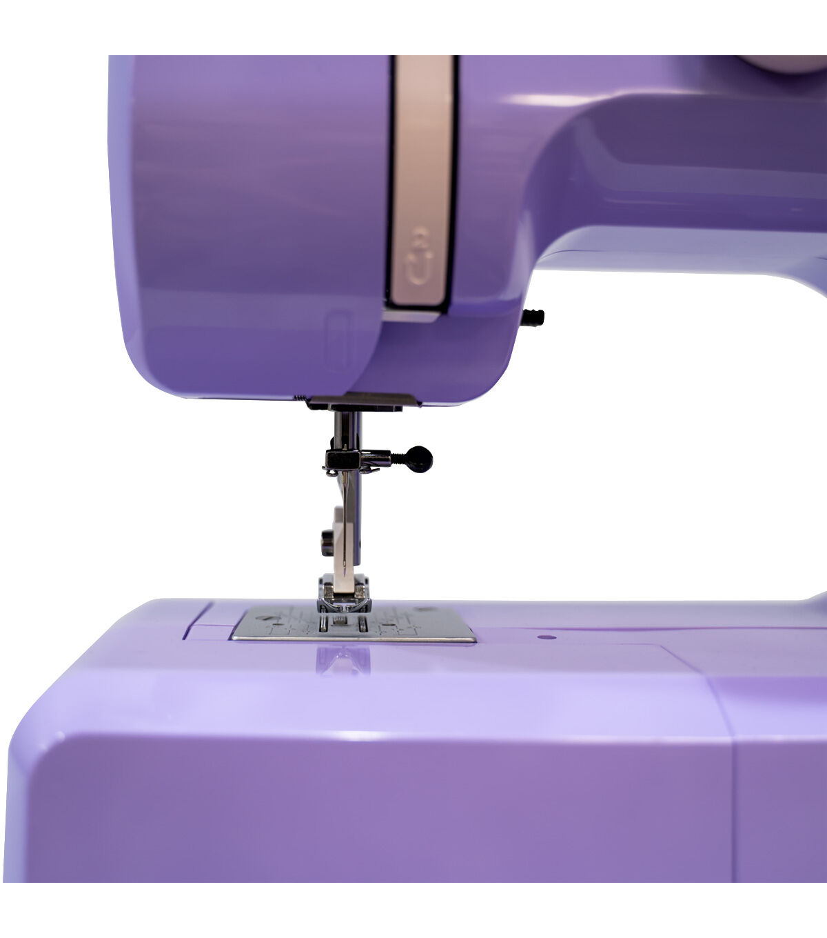 The Janome Lovely Lilac is a quality entry-level model offered at a fantastic price! This mechanical machine features 15 built-in stitches and a four-step buttonhole. Dial pattern selection and stitch width and length adjustment ensure ease of use. Remove the accessory bin to reveal the great free arm feature making it versatile for all types of sewing. Lightweight and easy to use yet built with a full metal internal frame for strength and precision stitching. This is the perfect machine for a beginner as a backup model for someone on the go, the Lovely Lilac color and the price is just right.