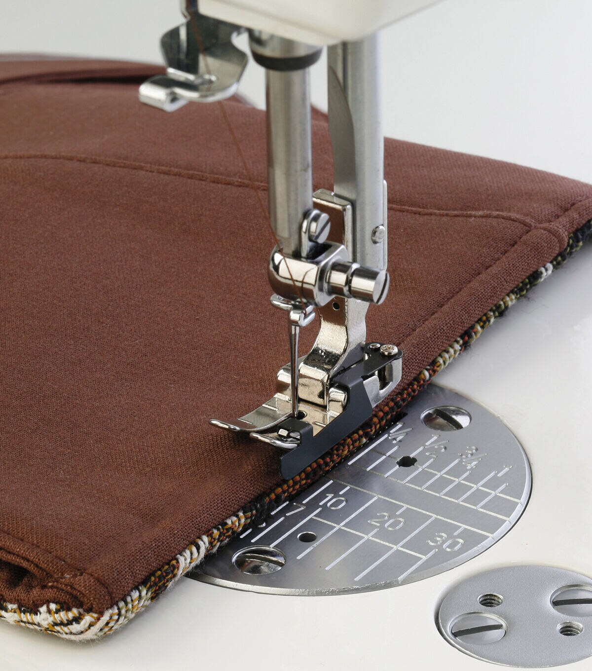 - Also has markings along the side which allows you to drop your needle and go around a corner maintaining the ¼ inch seam