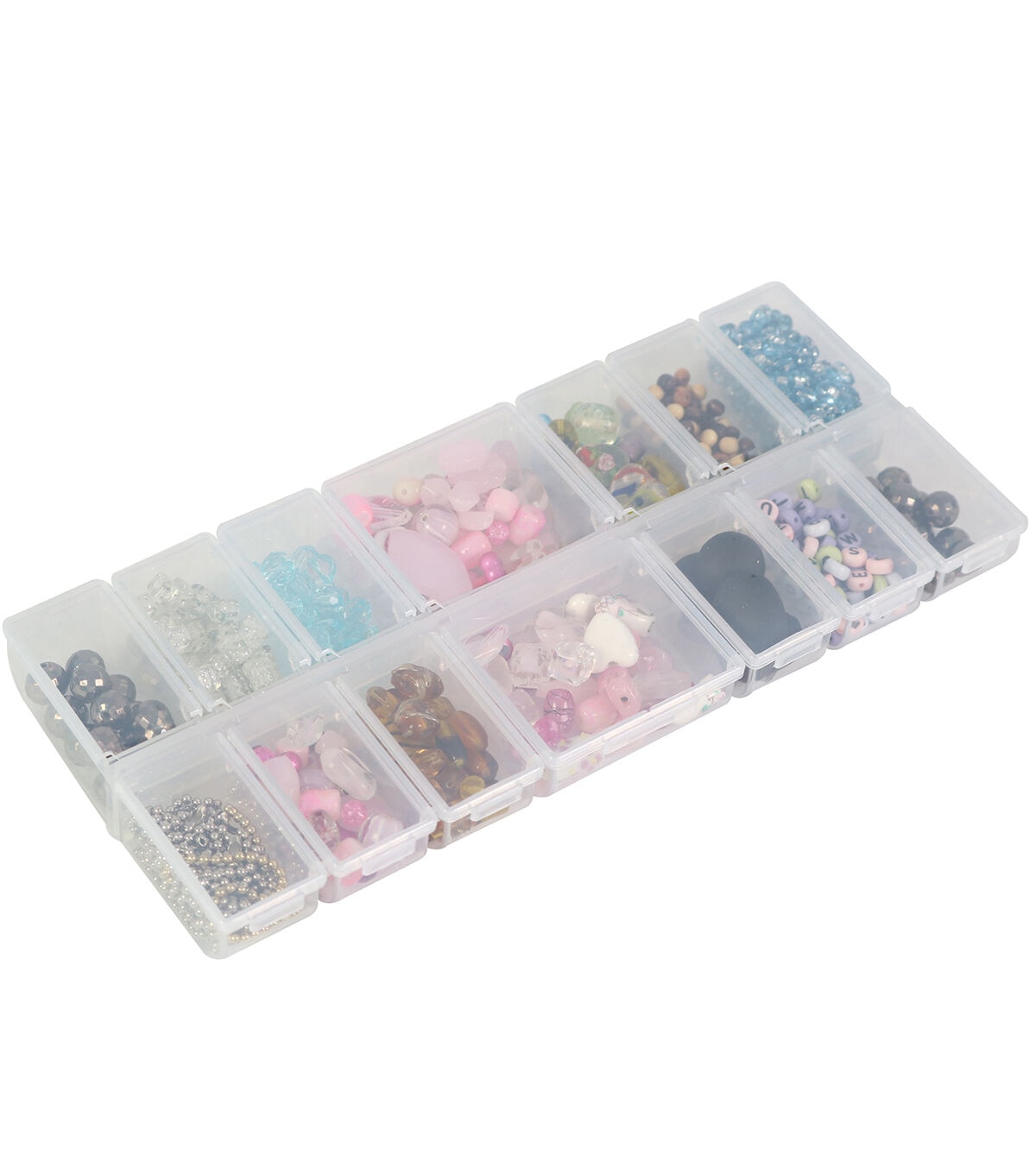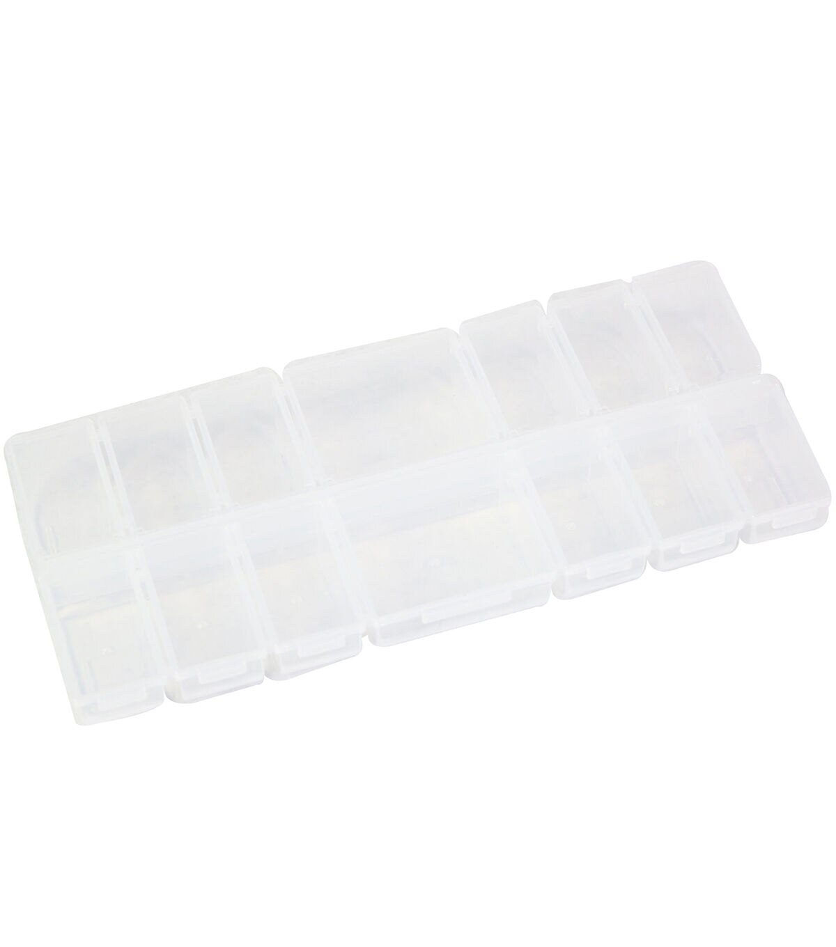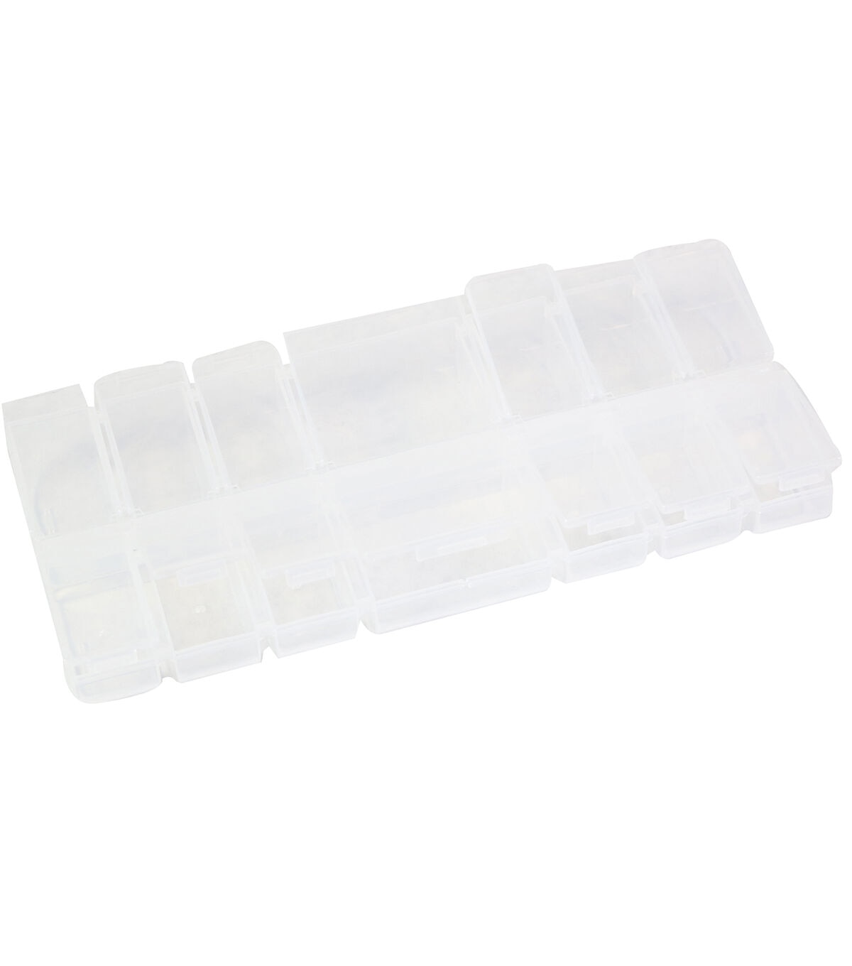 This 7 compartment storage box is perfect for so many small items. Each compartments snaps closed so nothing falls out. The box is clear so you will be able to see what is inside.