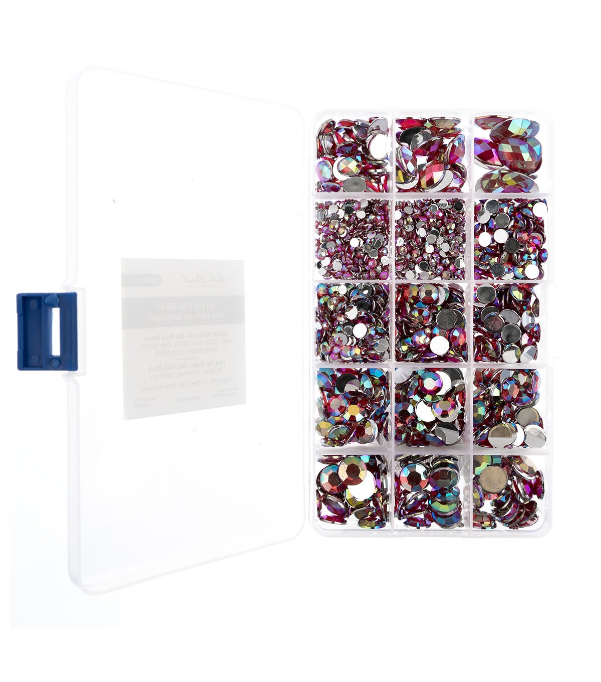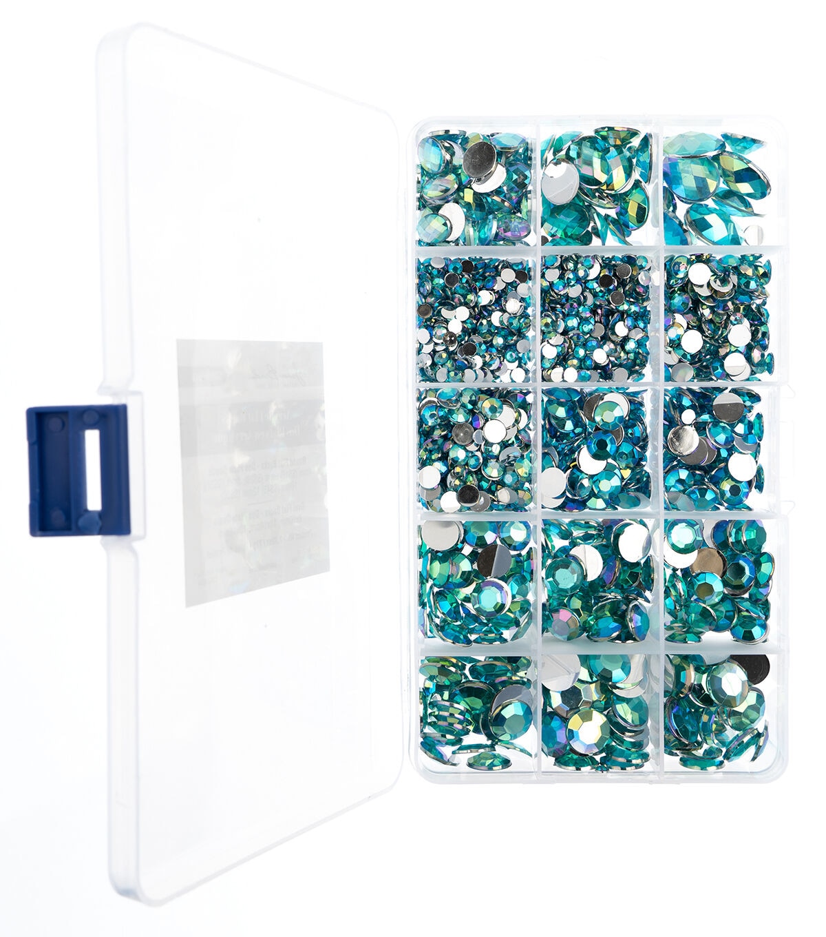 Perfect for anyone who applies flat backs to clothing, costumes, paper arts and home decor items. There are over 1000 pieces in the eight most popular sizes for acrylic flat back projects in each box. The round sizes are 4mm, 6mm, 8mm, 10mm, and 12mm and in the oval 8x10mm, 10x14mm, and 13x18mm. For easy storage and convenience they come in a plastic box with a lid.