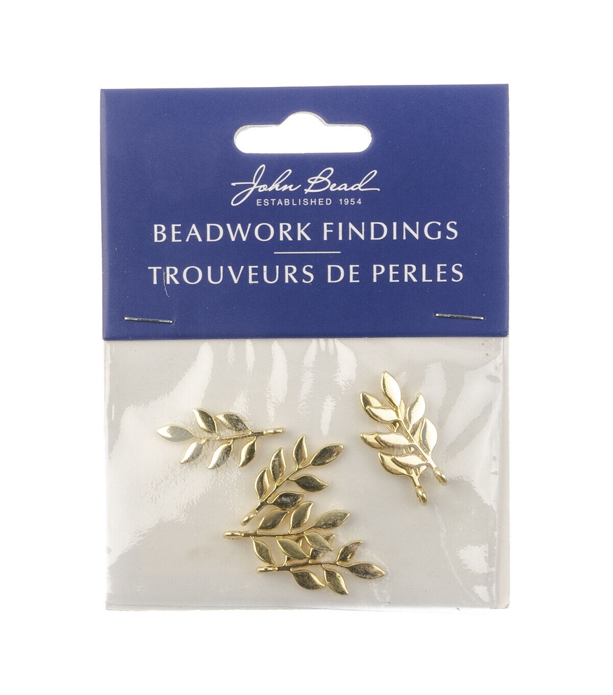 These are new Gold Beadwork Findings by John Bead. The product is a Gold Pendant shaped like a Branch with Leaves.