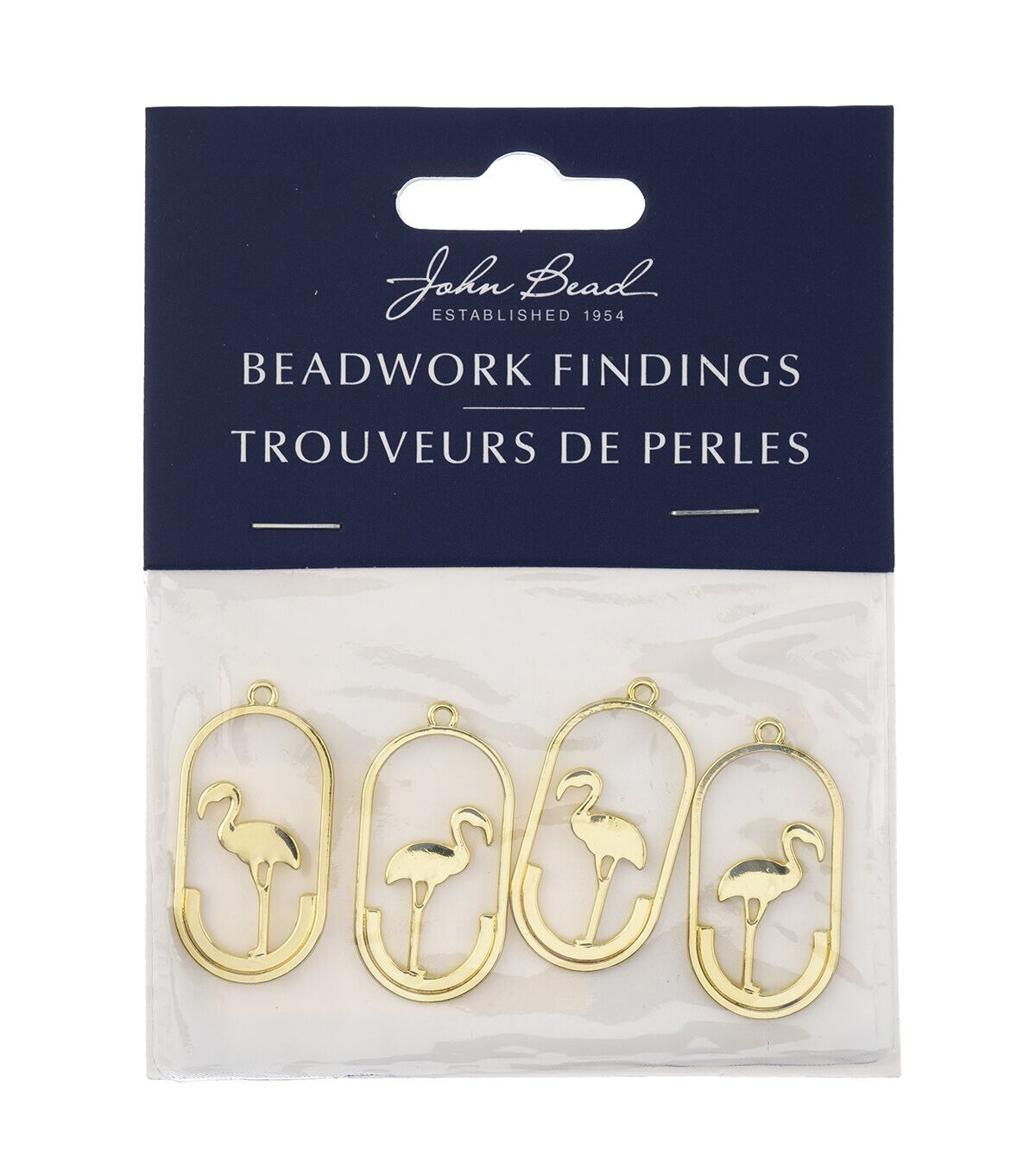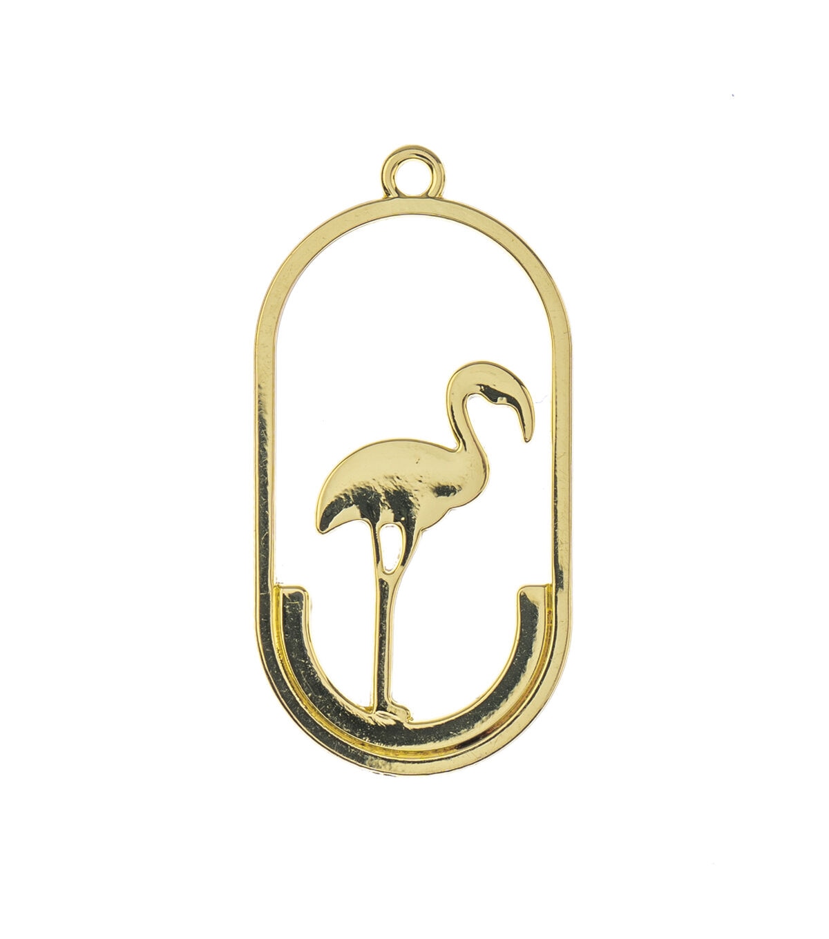 These are new Gold Beadwork Findings by John Bead. The product is a Gold Pendant shaped like a Oval with Flamingo.
