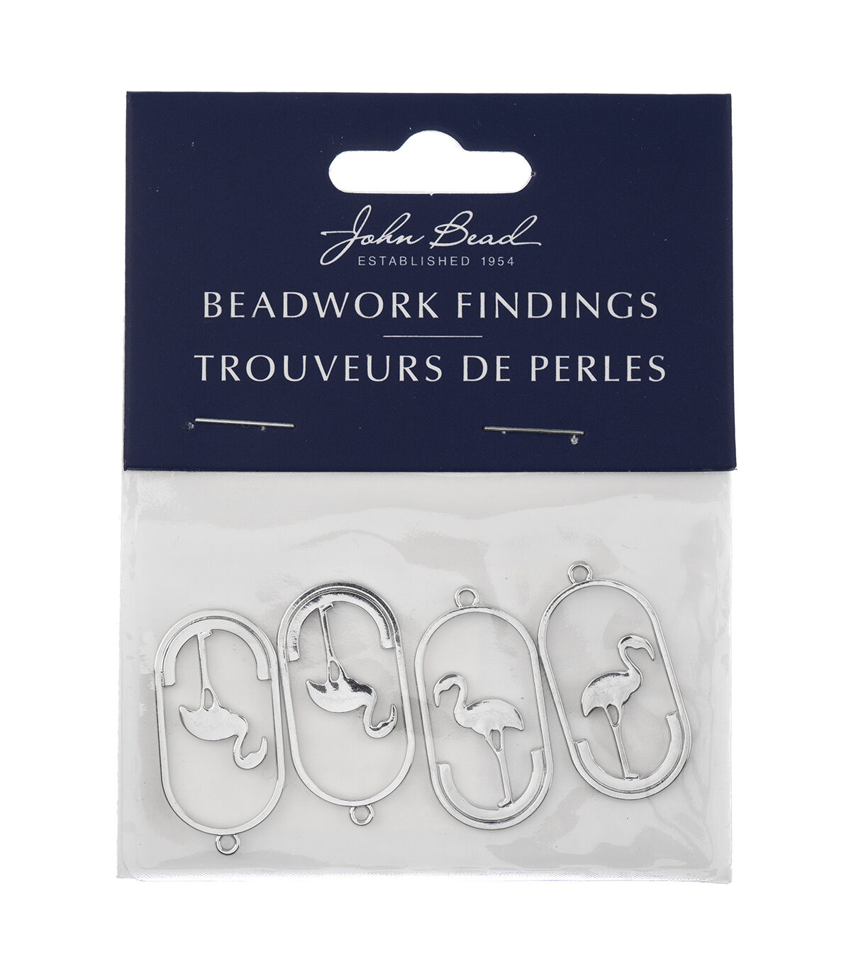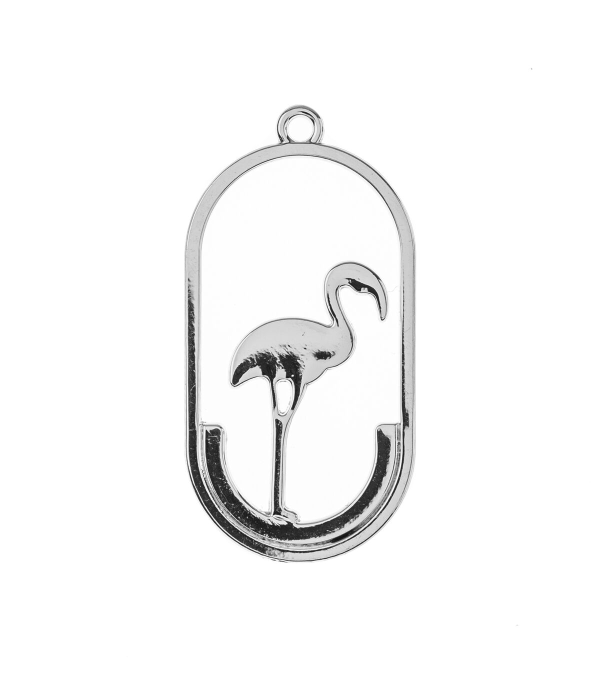 These are new Silver Beadwork Findings by John Bead. The product is a Silver Pendant shaped like a Oval with Flamingo.