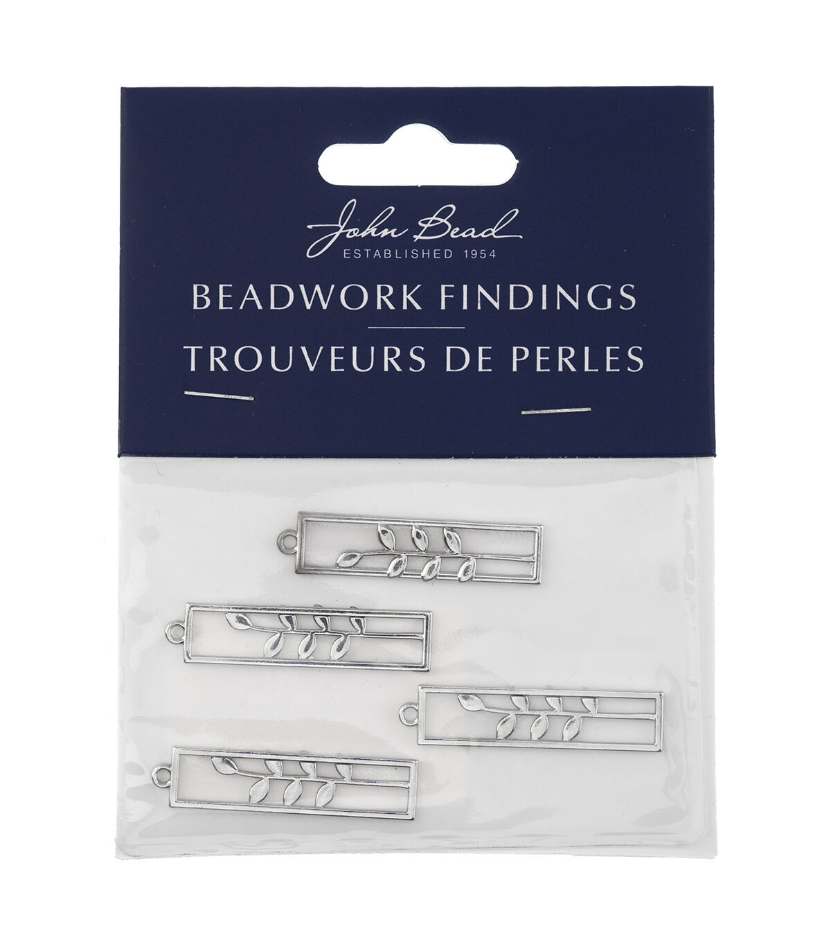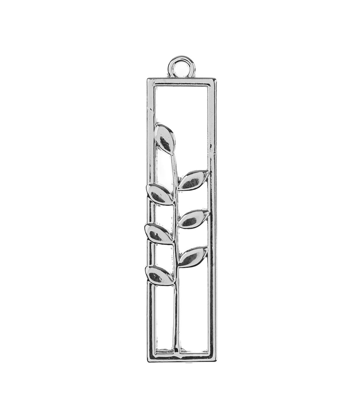 These are new Silver Beadwork Findings by John Bead. The product is a Silver Pendant shaped like a Rectangle with Leaves.