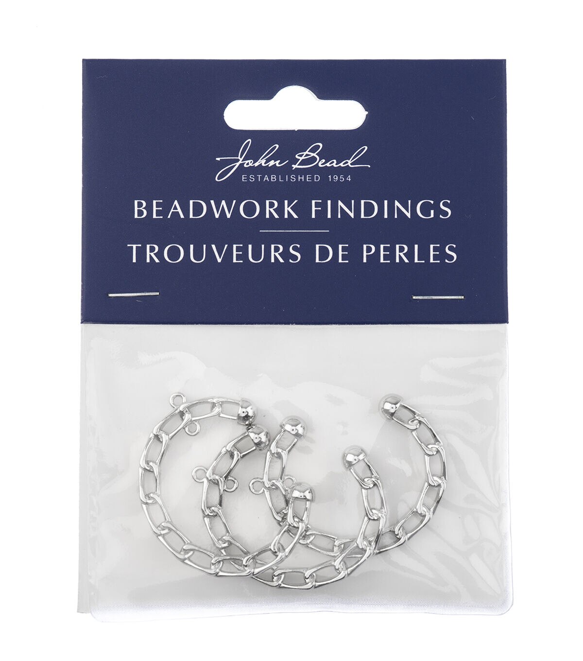 These are new Silver Beadwork Findings by John Bead. The product is a Silver Pendant shaped like a Chain Half Circle.