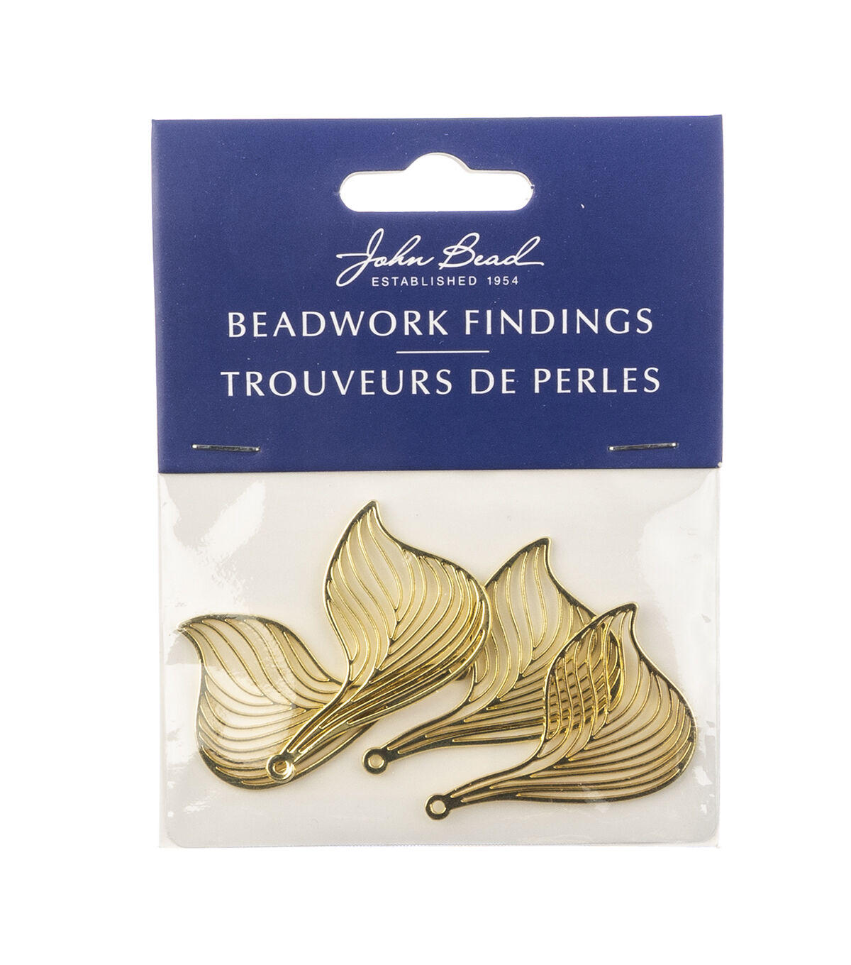 These are new Gold Beadwork Findings by John Bead. The product is a Gold Pendant shaped like a Leaf.