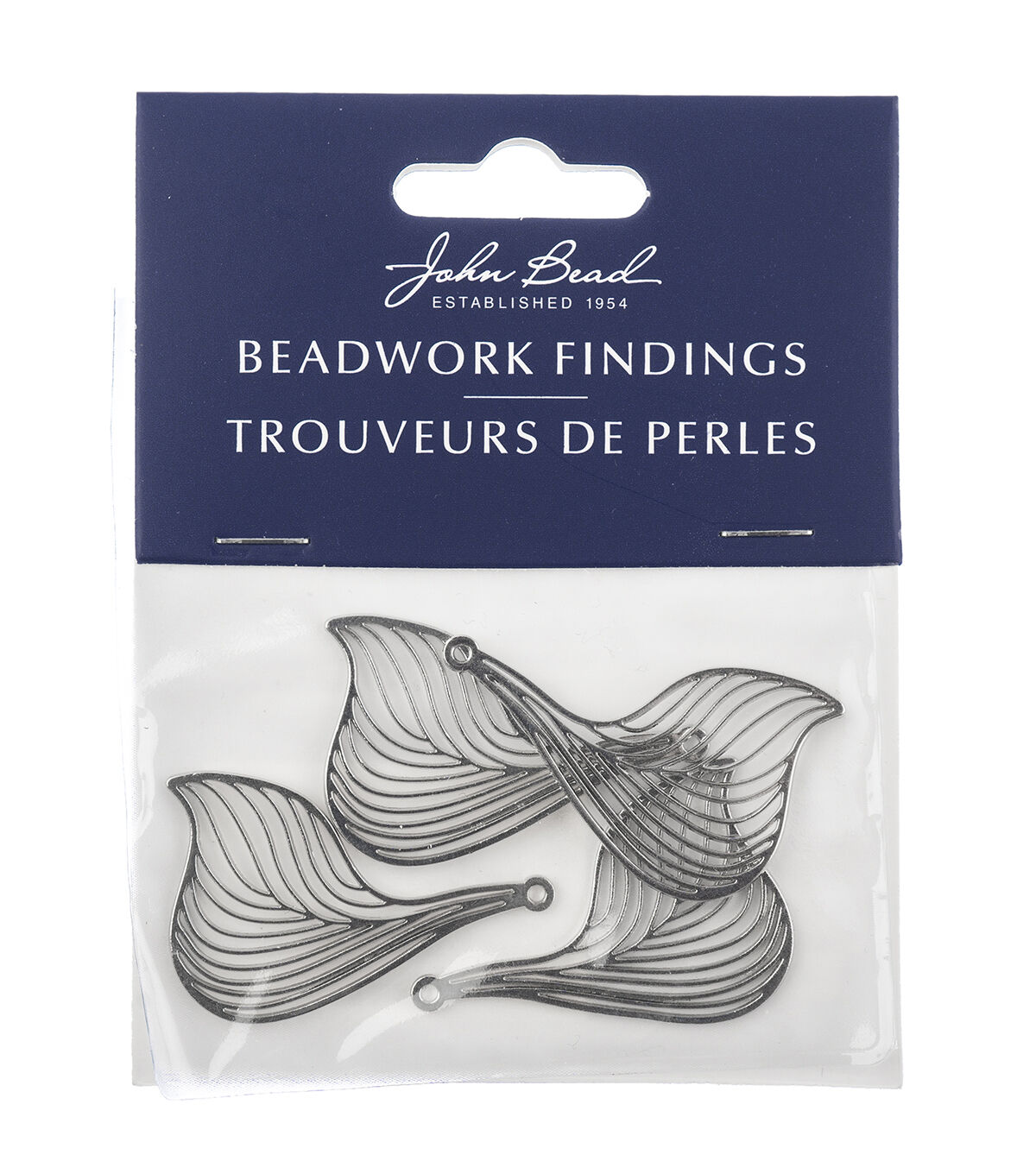 These are new Silver Beadwork Findings by John Bead. The product is a Silver Pendant shaped like a Leaf.