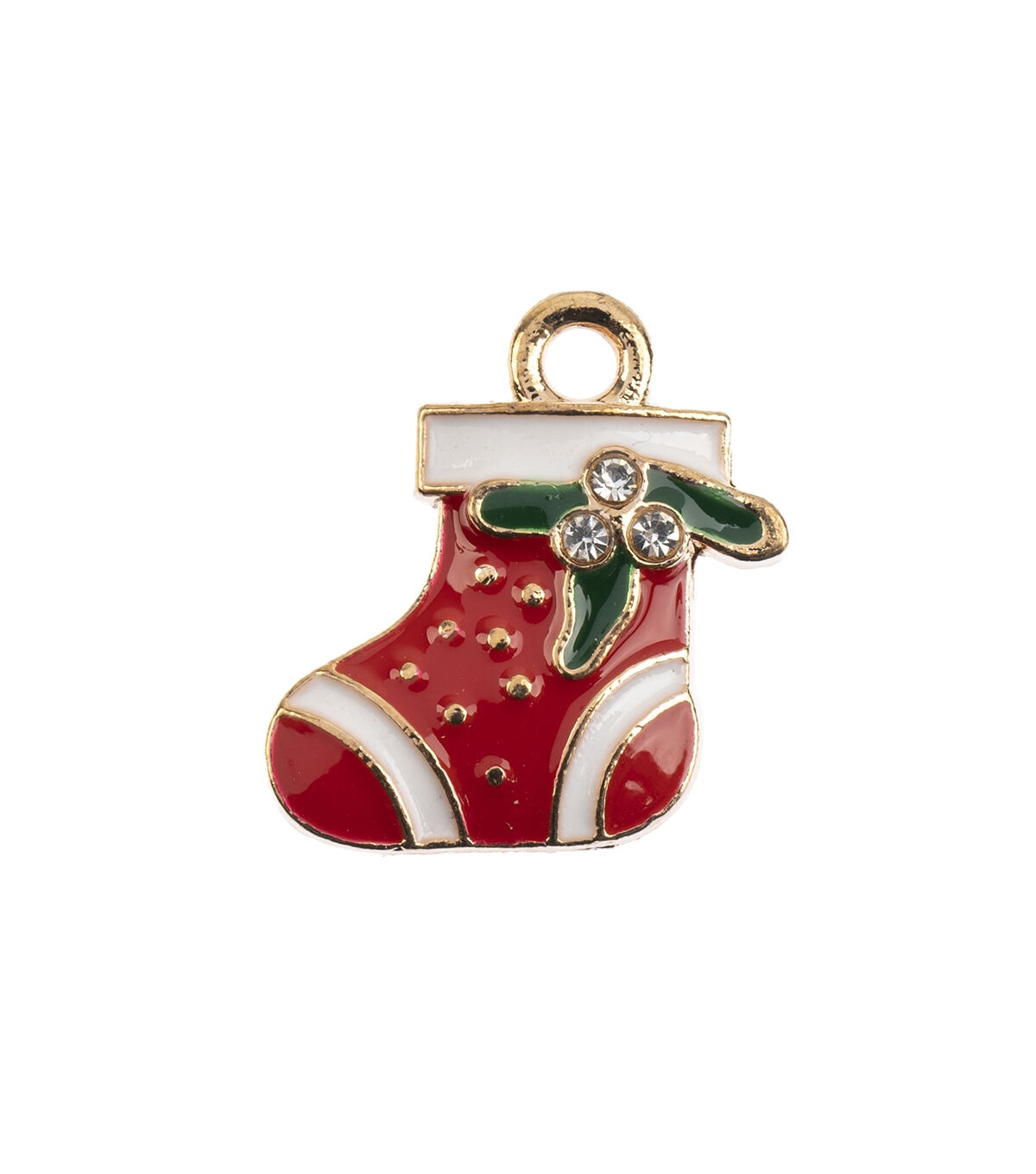This is a new Christmas Collection in the Sweet & Petite Charms category. The charms are in different shapes and sizes. This is a charm of a Stocking. It is 18x17mm in size. There are 8 pieces in the pack