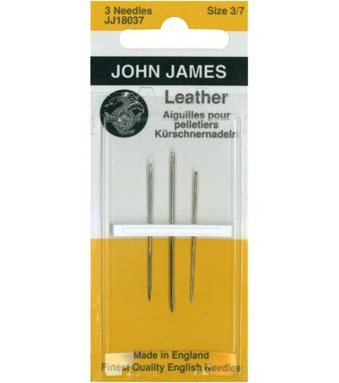 The John James Leather Hand Needles are perfect for creating accessories using leather. Designed with a triangular point, these needles can easily pass through tough materials like leather, suede and plastic without causing unnecessary abrasion. This pack includes three needles in assorted sizes.