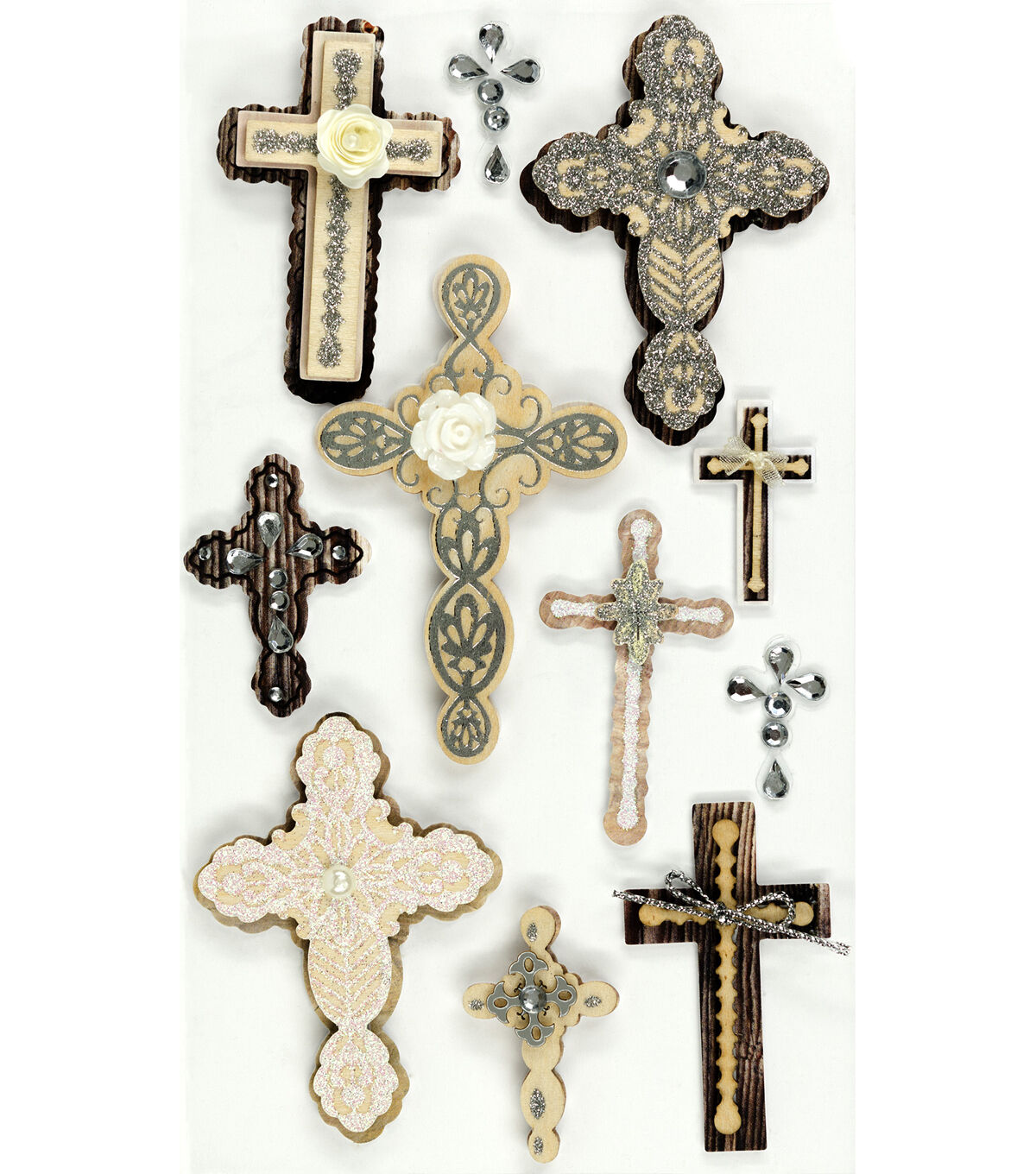 Enliven your handmade paper crafts with the Jolee’s Boutique Dimensional Stickers-Large Crosses. These 3D embellishments feature lots of different crosses, which are perfect for accenting bible pages, journaling entries and lots more. Simply peel and apply these acid and lignin-free stickers onto a clean, dry surface to add a special touch to any card or craft project.