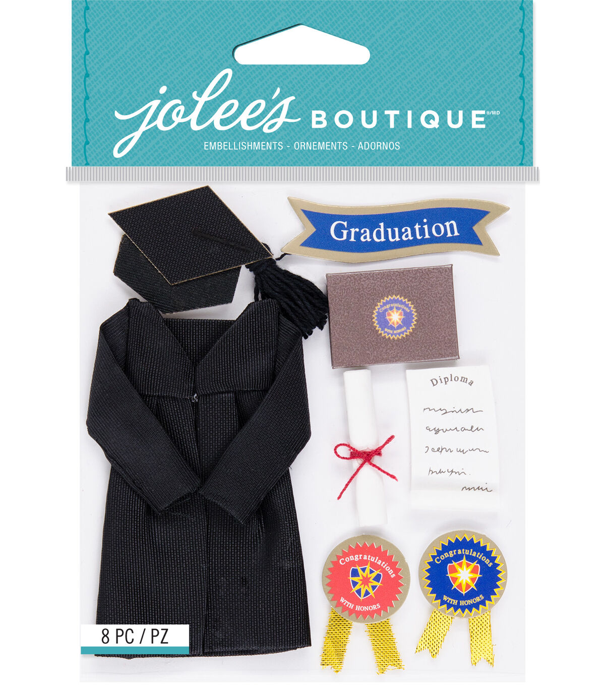 Our Jolee’s Boutique stickers feature a great mix of materials like textured fabrics, Faux leather, paper and attention to detail with ribbons, sequins, and gems for a unique, realistic touch that gives any creative idea a dimensional boost. This Graduation-themed Jolee's Boutique embellishments are perfect for creating cards, layouts, to decorate a gift bag or even for everyday fun.