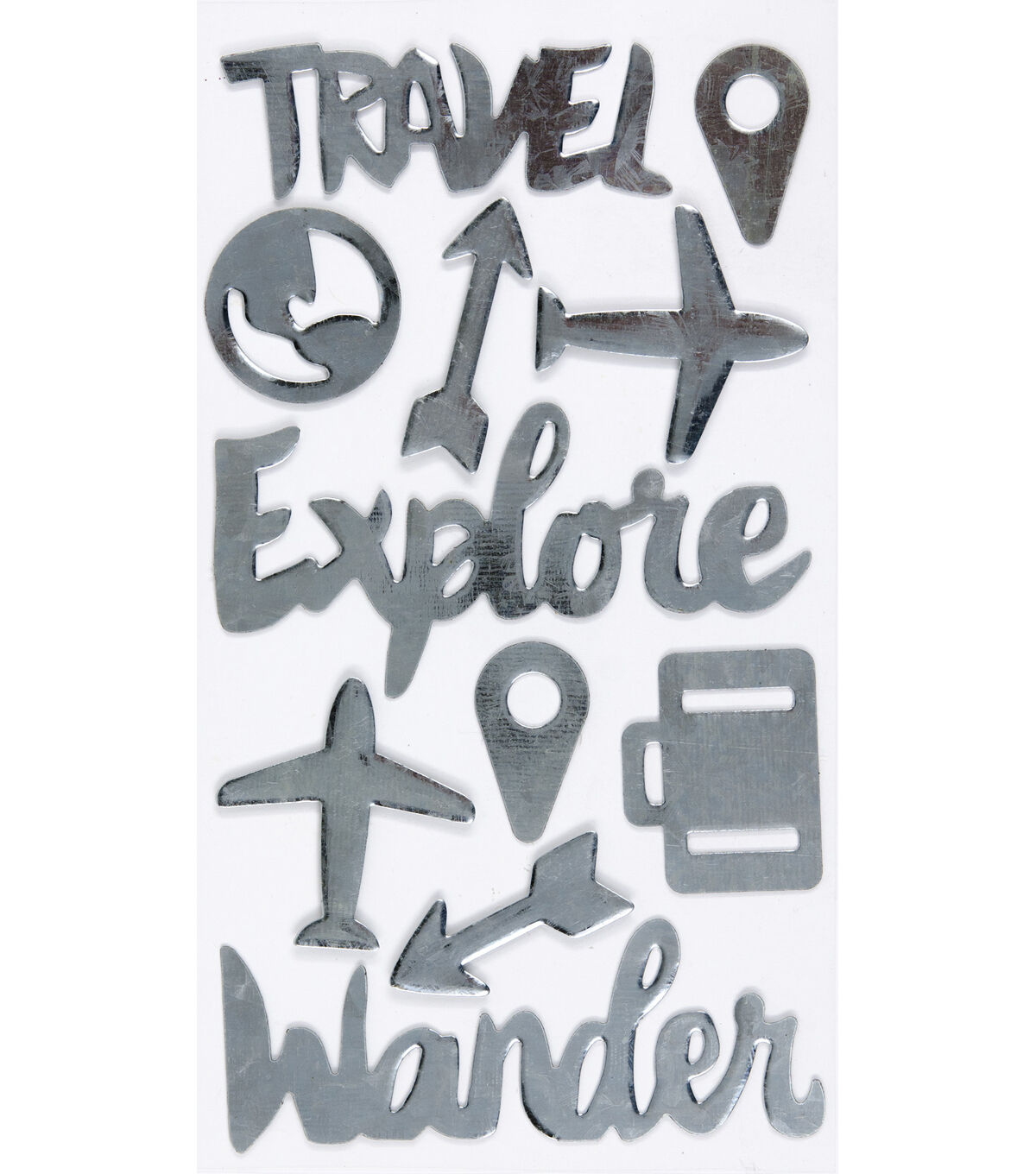 Simply peel and stick the Jolee's Boutique Metal Stickers-Travel Words & Icons onto your project media for an interesting look. The unique design partnered with metal makes these stickers from K&Company a must have for all of your crafting needs. They feature fun travel-themed words and captions, and are perfect for journals, tags, cards and more.