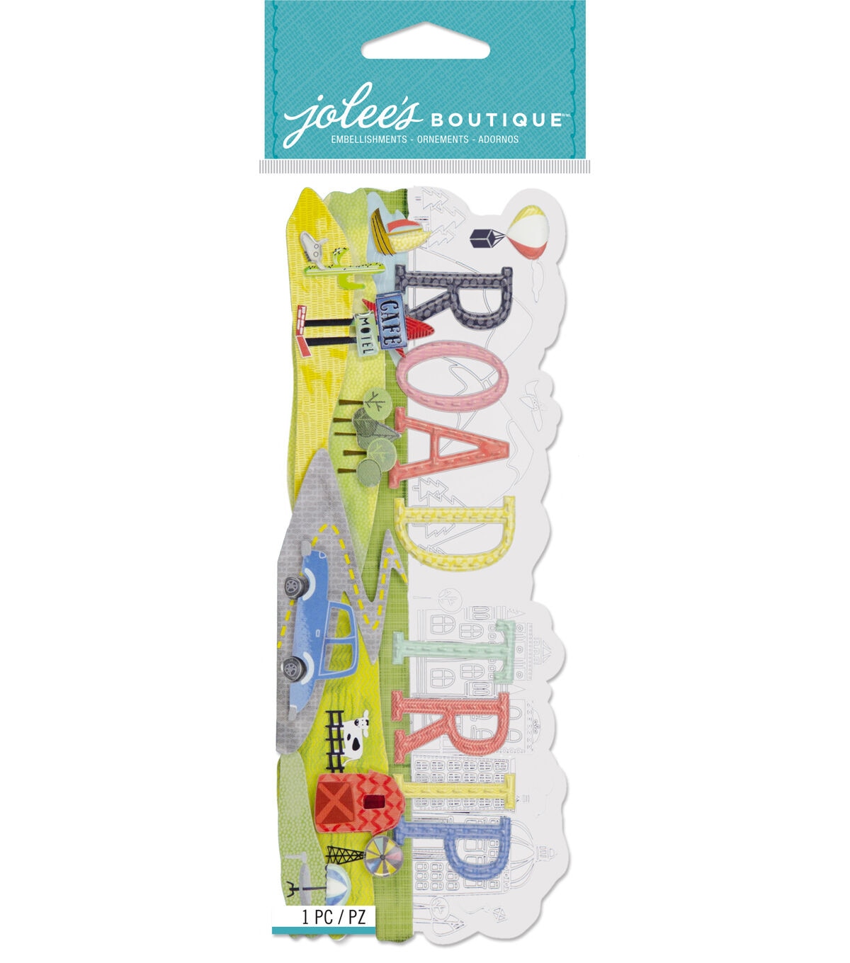 Bring home the Jolee’s Boutique Stickers-Road Trip to decorate your vacation layouts and albums. These 3D embellishments feature a car, a camera, a motel sign, an ear jack, captions and a map of the USA. Simply peel and apply these acid and lignin-free stickers onto a clean, dry surface to add a special touch to any card or craft project.