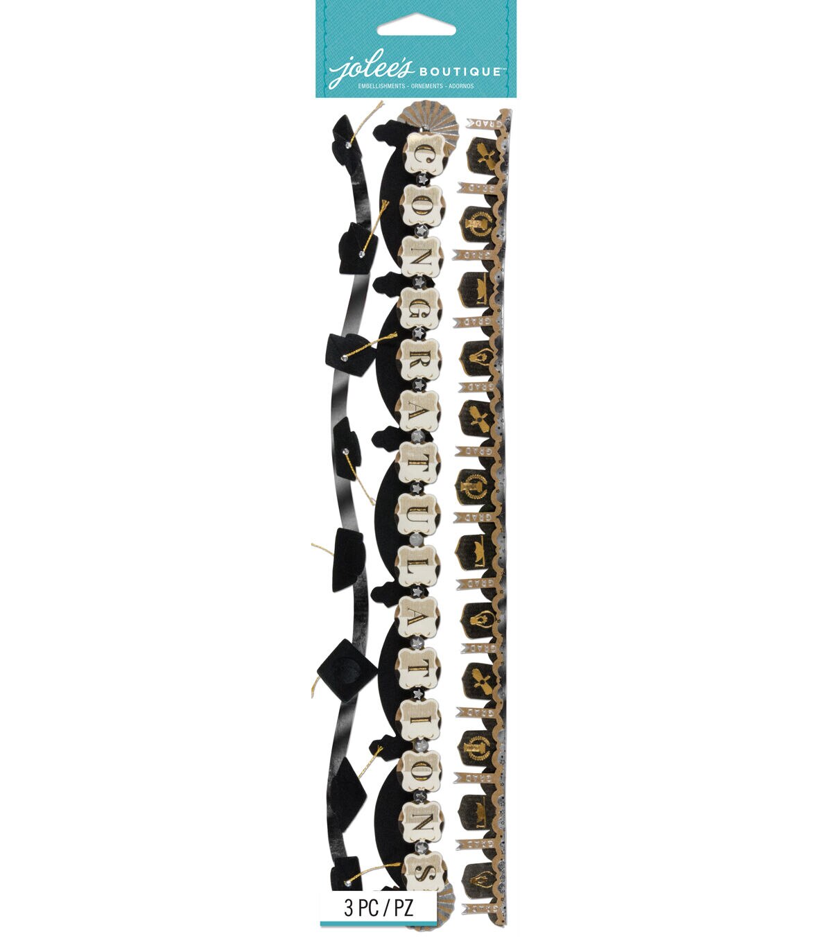 Make cards, invitations, and paper crafting projects with the Jolee's Boutique Stickers-Graduation Border. These graduation-themed stickers feature elegant touches of layered paper and textural accents. Simply peel and apply these acid and lignin-free stickers to a clean, dry surface onto your project media for a decorative touch.