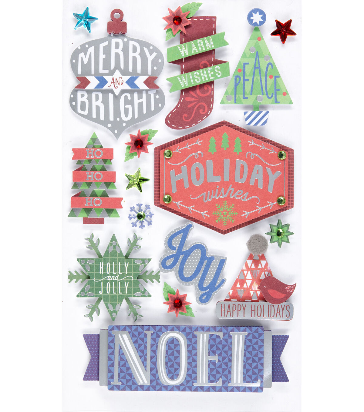 Give holiday cards, invitations, gift wrap and party favor bags a decorative touch with the Jolee's Boutique Christmas Stickers-Holiday Words. These greeting stickers feature foil and gem accents for lovely visual appeal. Use these fun and creative accents to accent all of your holiday craft projects.