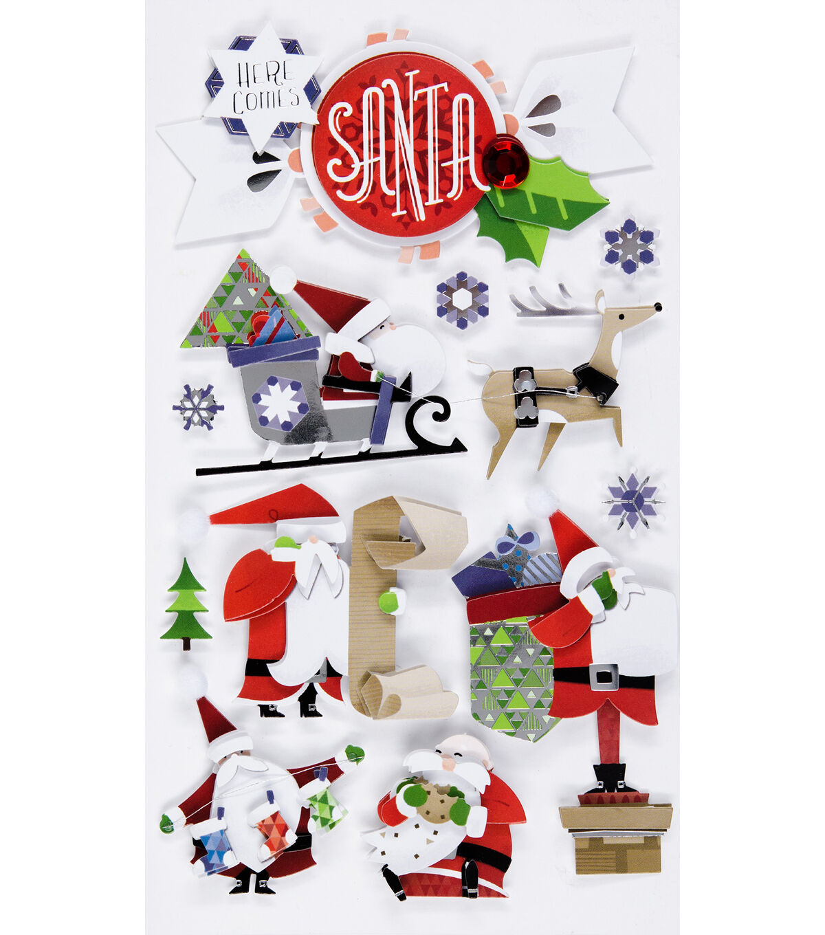Lend visual flair to your projects with the Jolee's Boutique Christmas Stickers-Santa. These beautiful Santa scene stickers with foil and gem accents make a fun choice for all of your creations. Use these mixed material dimensional stickers for decorating your holiday cards, invitations, gifts, wrapping and so much more.