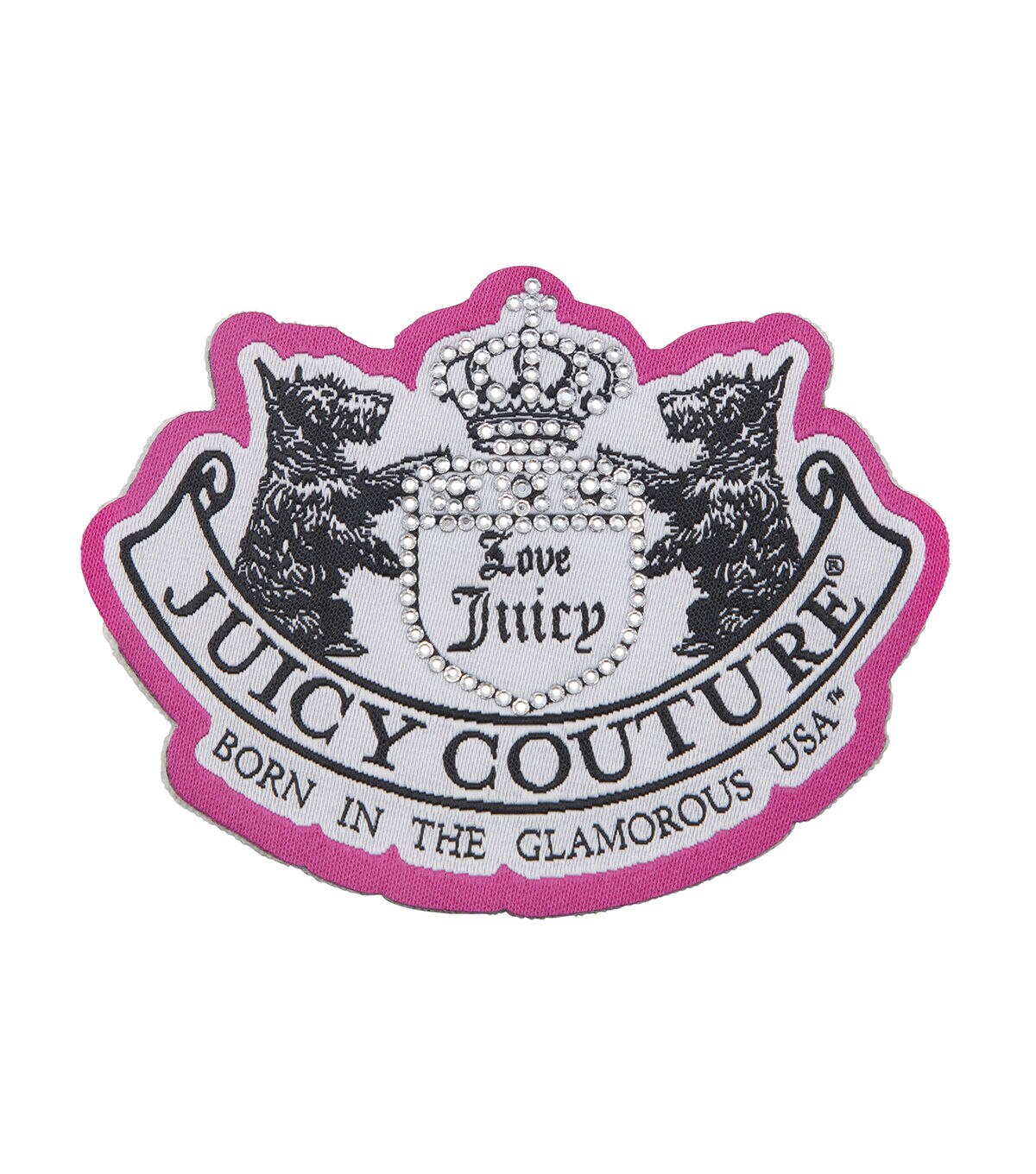 The Juicy Couture Logo Applique will be perfect to embellish a plain denim jacket. This applique patch is shaped like the logo of Juicy Couture. It comes trimmed with silver-hued rhinestones for visual flair. You can also use it to adorn a t-shirt, cushion, bag or any other fabric project.