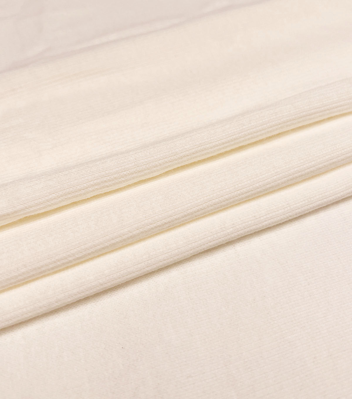 Looking for a fabric that is both comfortable and stylish? Look no further than Juicy Couture's Ivory Rib Knit Fabric. Made with a blend of 95% cotton and 5% spandex, this fabric is perfect for creating a variety of clothing items that are both breathable and stretchy. Whether you're looking to create a cozy sweater or a form-fitting dress, this fabric is sure to impress.