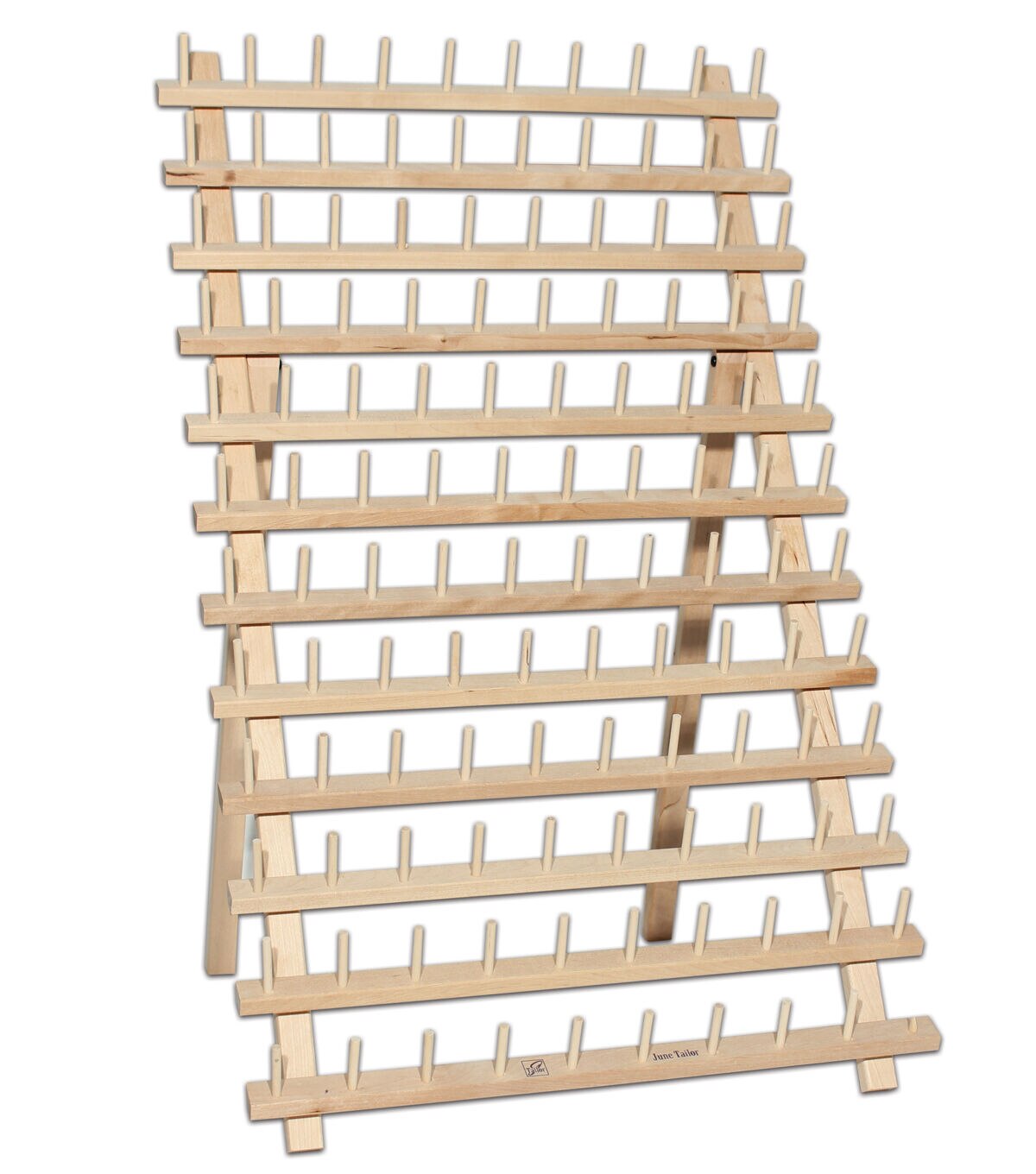 Neatly organize your sewing and craft threads in the June Tailor Mega-Rak II With Legs. Designed to accommodate up to 120 spools, this thread rack is a great storage utility. Its flip-out leg design allows you to conveniently place the rack in a free-standing fashion. To save on space, you can also fold-in the legs and hang it on a wall.