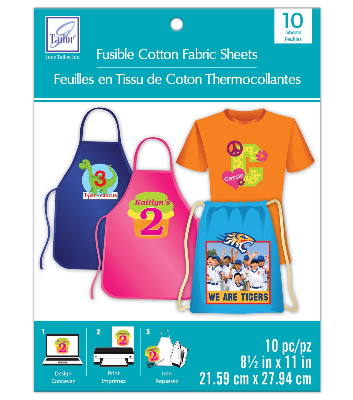 Lend a custom touch to your fabric projects with the June Tailor Fusible Cotton Fabric Sheet Value Pack. These printable cotton sheets can be used to personalize T-shirts, bags, aprons or denim with photos, clip art and text using a computer and color ink jet printer. They are made of 100% cotton fabric with a fusible backing, and you can apply them to any surface that can be ironed.