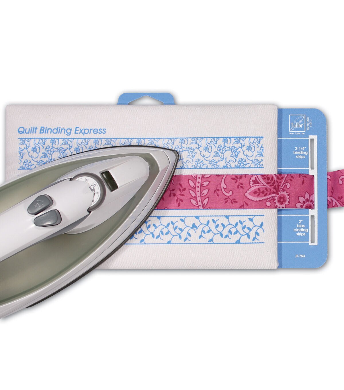 Fold and press perfect binding strips quickly and accurately with the June Tailor Quilt Binding Express. You can fold fabric strips in half and insert them into the appropriate slot on this binding express. Then pull and press for perfect binding every time for your fabric crafting projects.