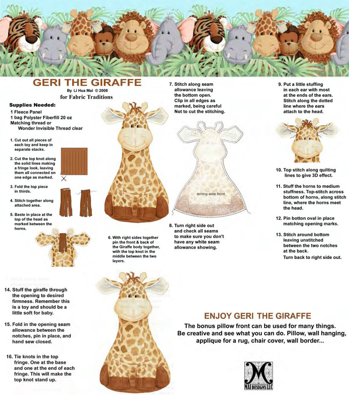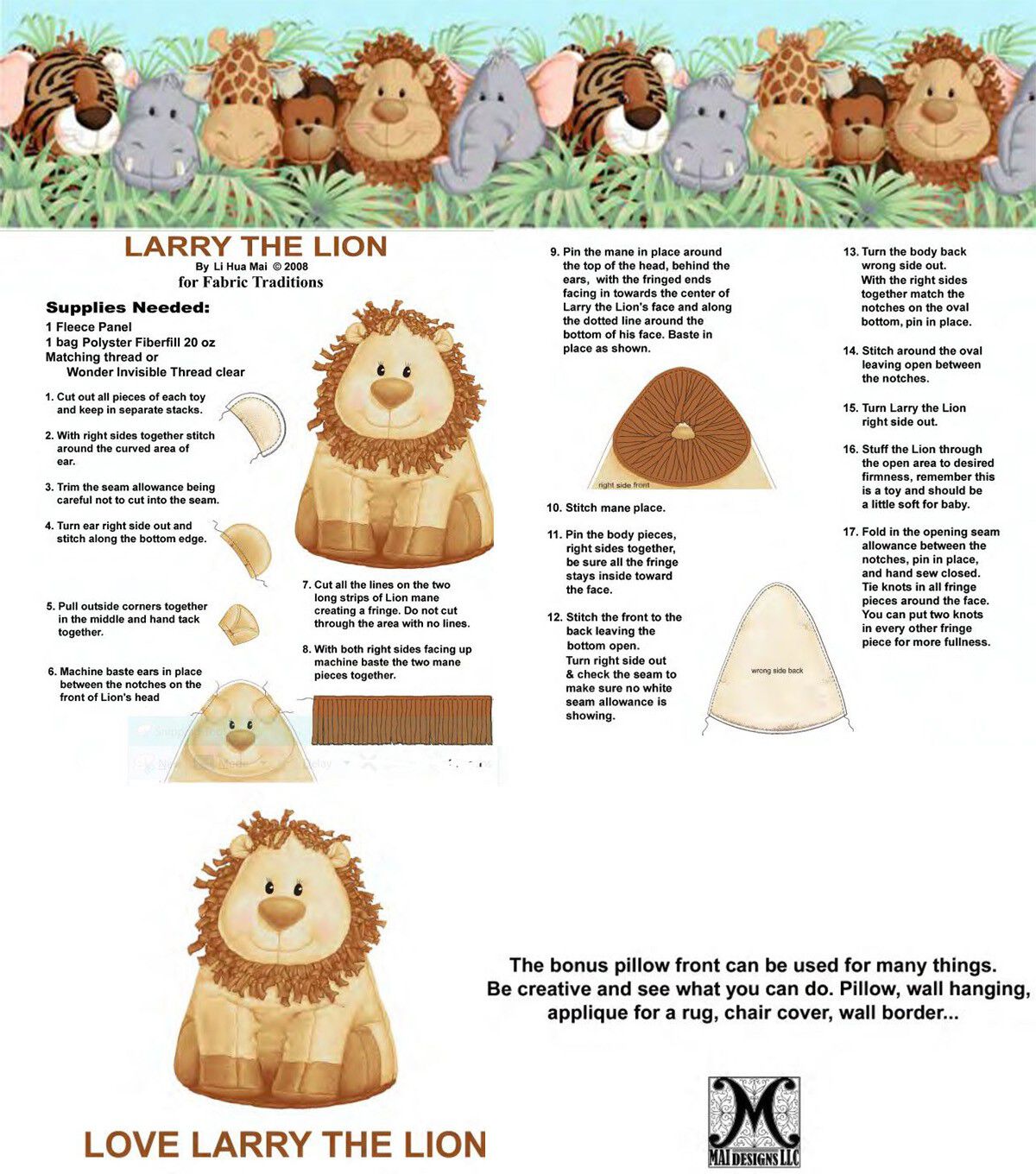 Adorable Brown Stuffed Lion Giraffe Nursery Panel Fleece Fabric