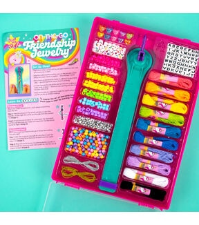 - Kit Includes: Round Beads (Pink, Orange, Yellow, Blue, Purple), 108 Alphabet Beads, 3 Skeins Elastic Cord, 100 Round Faceted Beads (Silver), 1 Bracelet Suction Tool, 140 Pony Beads (Pink, Purple, Blue, Green, Hot Pink, Orange, Yellow), 2 Skeins Friendship Thread (1 Gold, 1 Silver, 2 yds. Each), 10 Heart Beads, 10 Skeins Friendship Thread (1 Black, 1 Blue, 1 Green, 1 White, 1 Orange, 1 Pink, 1 Periwinkle, 1 Teal, 1 Yellow, 1 Purple, 8.75 yds. Each), 1 Storage Case (8 x 1.75 x 11.6 in.), Easy-To-Follow Instructions