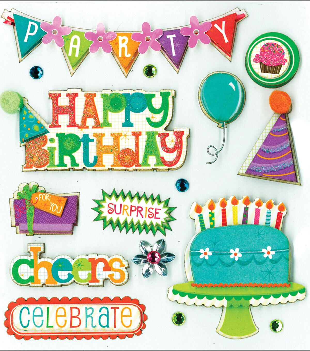 K&Company’s Birthday Wishes Dimensional Embellishments make every project impressive! Use these dimensional stickers on page layouts, creative frames, handmade cards, gift tags and more!