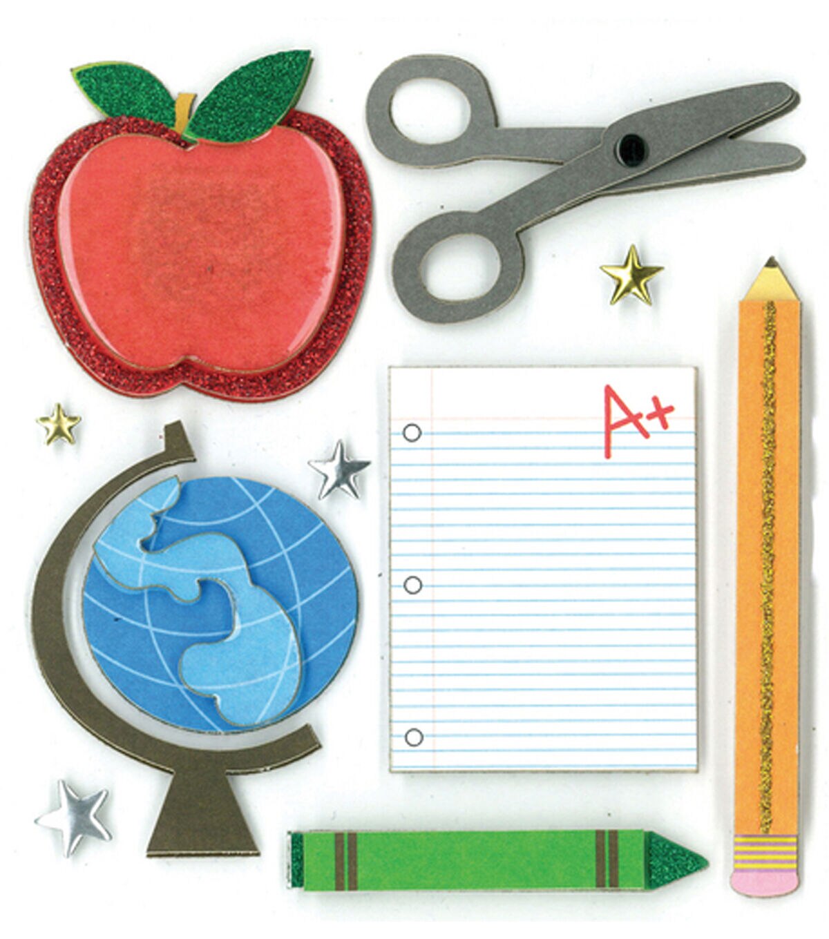 Make every project grand using the K&Company Embellishments-School Days. These school-themed dimensional stickers can be used on page layouts, creative frames, handmade cards, gift tags and more. They are acid and lignin free. Just peel them off the sheet and stick them wherever you want.