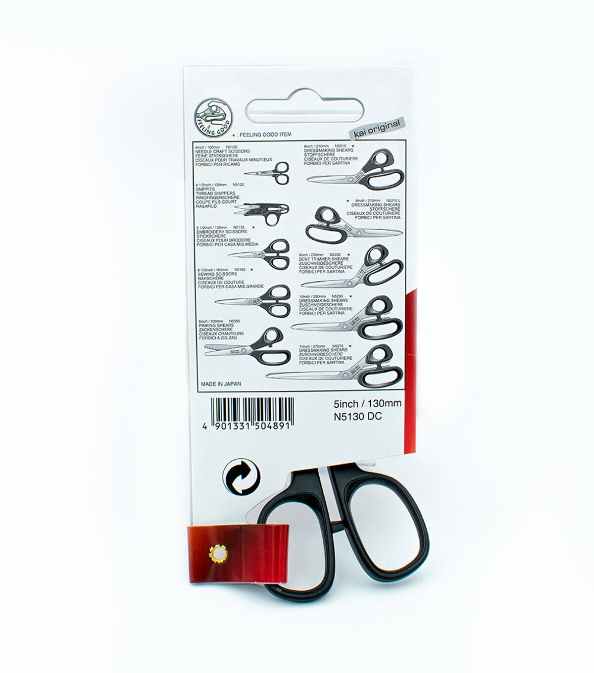 The KAI 5130dc is a 5in Double Curve Scissor that allows for easy maneuverability while trimming your embroidery hoop designs. The sharp, precise tips provide an accurate cut for embroidery stitches as well. Additionally, this is the modernized replacement of the classic duck-bill scissors. As with the rest of KAI 5000 Series scissors, the 5130dc Double Curve are made of a hardened stainless steel. This allows for a smooth and consistent, fatigue-free cut.