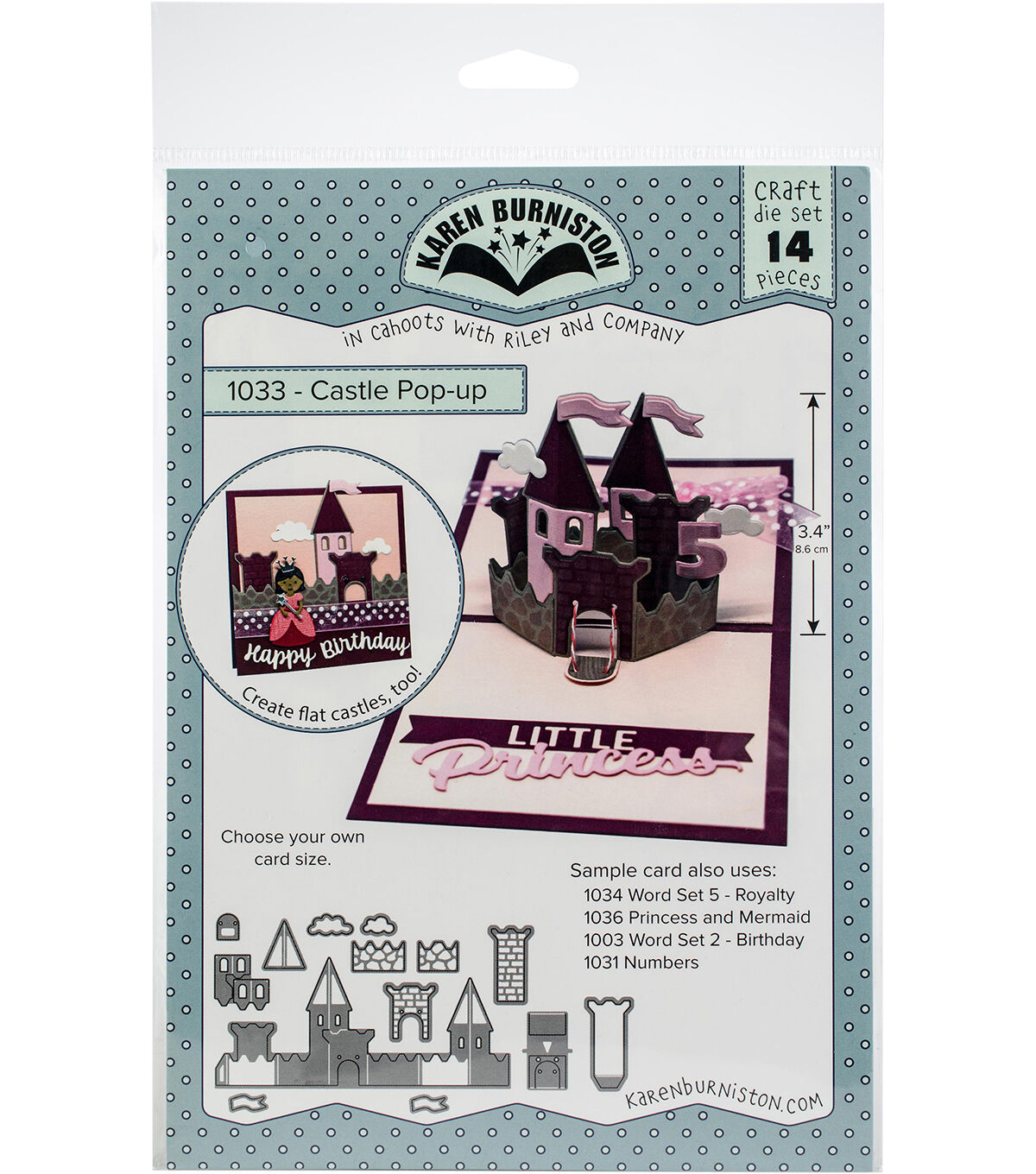 Karen Burniston dies will give an added touch to any paper project and are compatible with most die-cutting machines. This package contains Castle Pop-Up: a set of 14 metal dies measuring between 1x.375 inches and 7.5x3.875 inches. WARNING: Choking Hazard. Not suitable for children under 3 years. Imported.