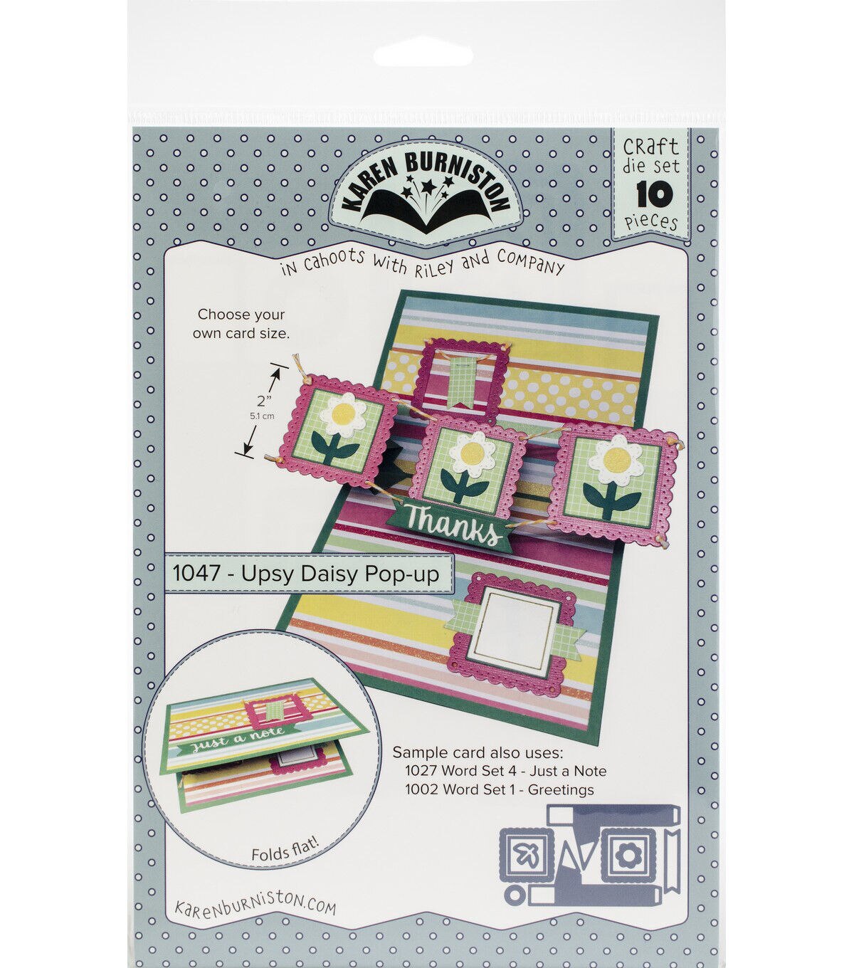 These wafer-thin metal crafting dies are compatible with most major die cutting machines. Packed with value, these innovative, cutting edge die sets will take your paper crafting to new heights. This package contains Upsy Daisy Pop-up: a set of ten metal dies measuring between .75x.75 inches and 2.5x5.25 inches. WARNING: Choking Hazard. Not suitable for children under 3 years. WARNING: May contain items with sharp edges. Handle with care. Imported.