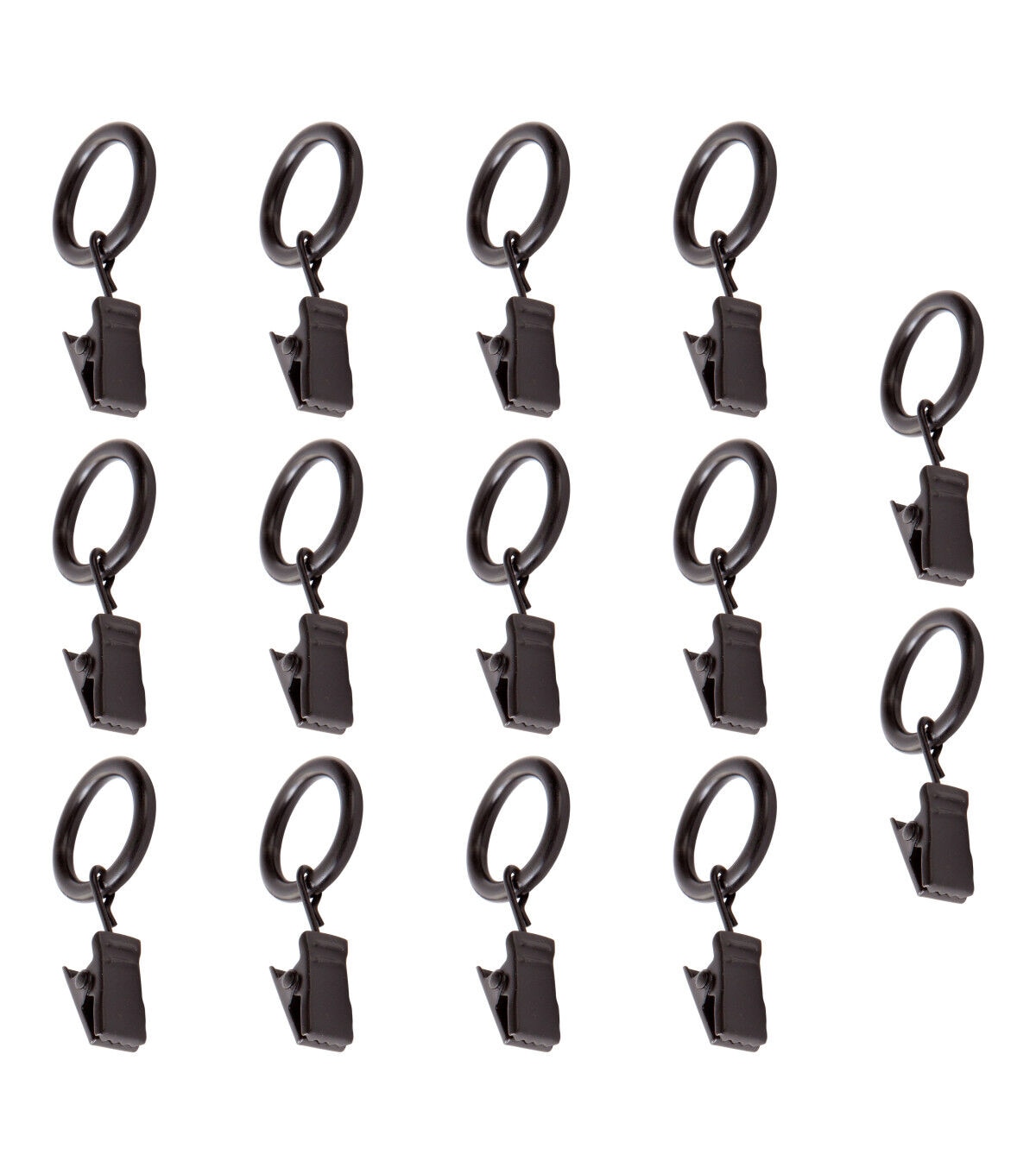 The Kenney Clip Ring Sets - Black will be a useful addition to complete your home decor. This pack includes 14 rings with clips that flaunt a black shade. These rings are perfect for rods that measure up to 0.5-inch diameter. They are available in a variety of finishes, sold separately, to match your decor.