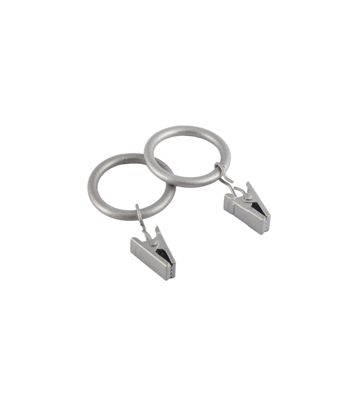 Hang curtains with ease using the Kenney Metal Clip Rings - Antique Pewter. This pack includes 14 curtain rings with clips that you can use with 1-inch or 1.25-inch diameter curtain rods. They boast a sturdy metal design and will slide smoothly onto any metal curtain rod. These clip rings sport an antique pewter shade.
