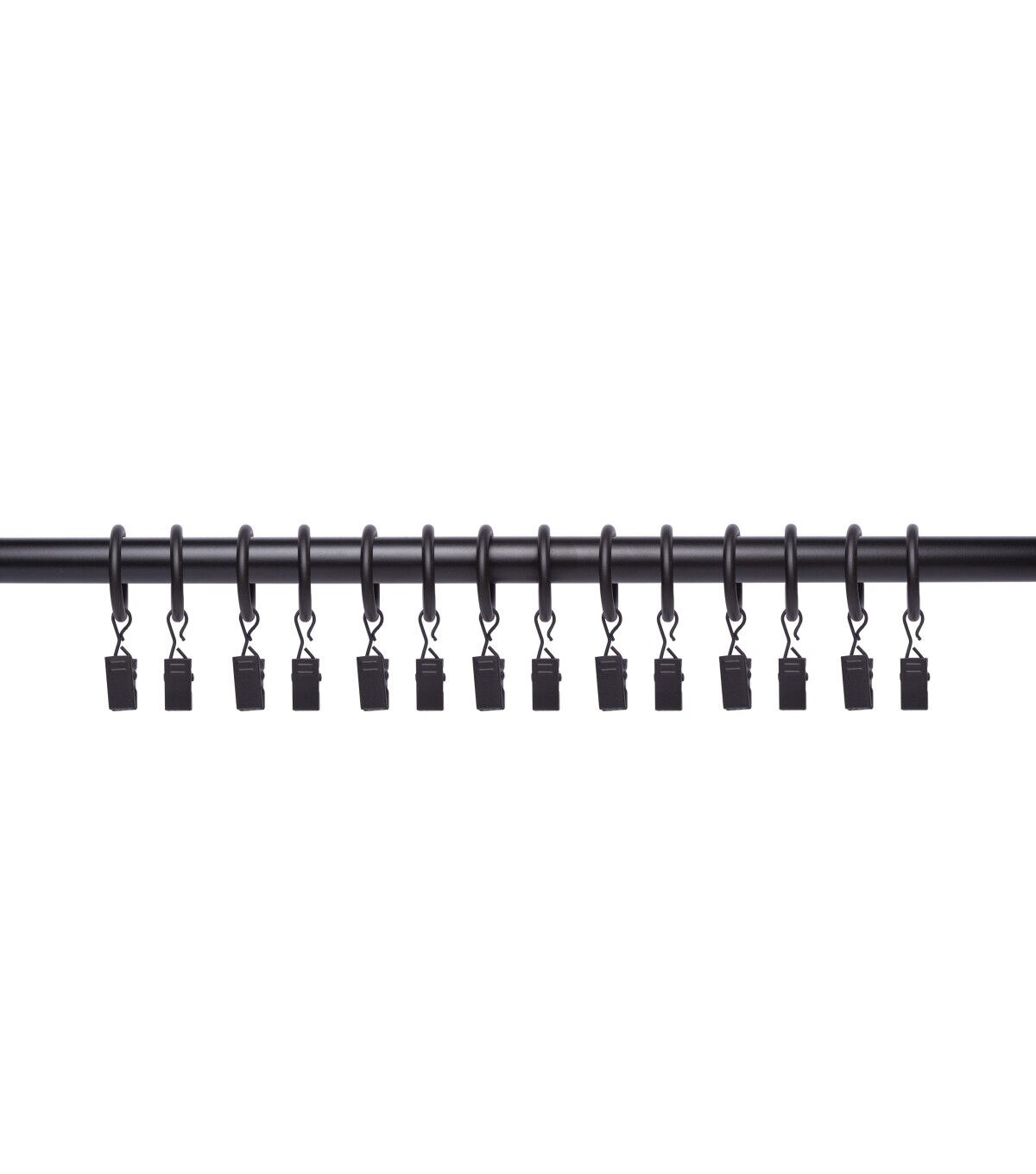 Hang curtains with ease using the Kenney Metal Clip Rings - Black. This pack includes 14 curtain rings with clips that you can use with 1-inch or 1.25-inch diameter curtain rods. They boast a sturdy metal design and will slide smoothly onto any metal curtain rod. These clip rings sport a black shade.