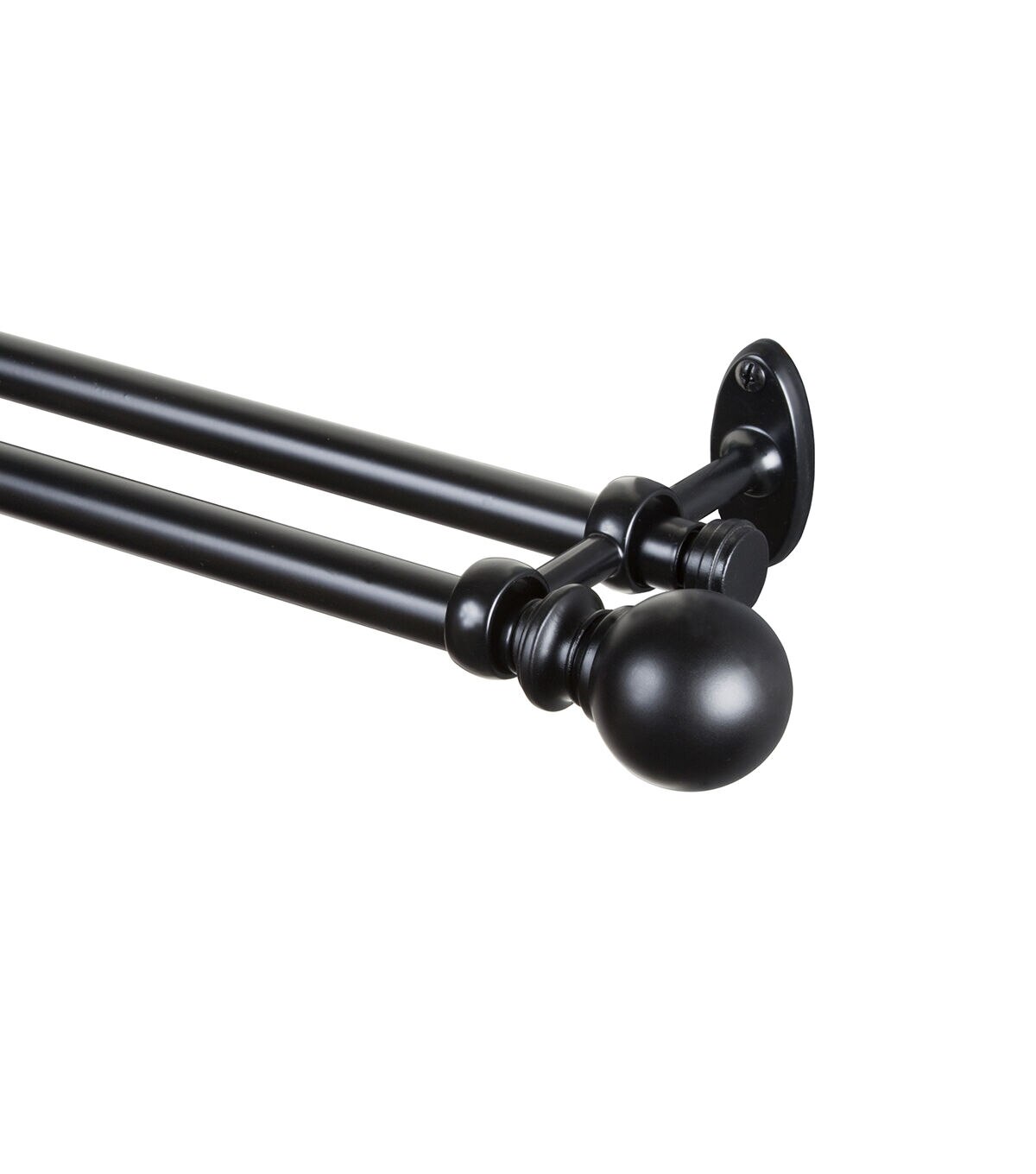 Create a layered look for windows in your living room, bedroom and dining room with the Kenney Wakefield Double Curtain Rods - Black. This set includes two 0.63-inch diameter, telescoping rods that will adjust to fit your window. These metal rods sport a black finish and are designed with matching decorative ball finials on the front rod. When installed, the double mounting brackets will perfectly align both rods. The back rod projects 1.5 inches from the wall and the front rod projects 4.38 inches from the wall. They can be used with lightweight, medium-weight and heavy-weight curtains. Layering your curtains enhances privacy and provides more insulation year-round. Mounting hardware and instructions are included.