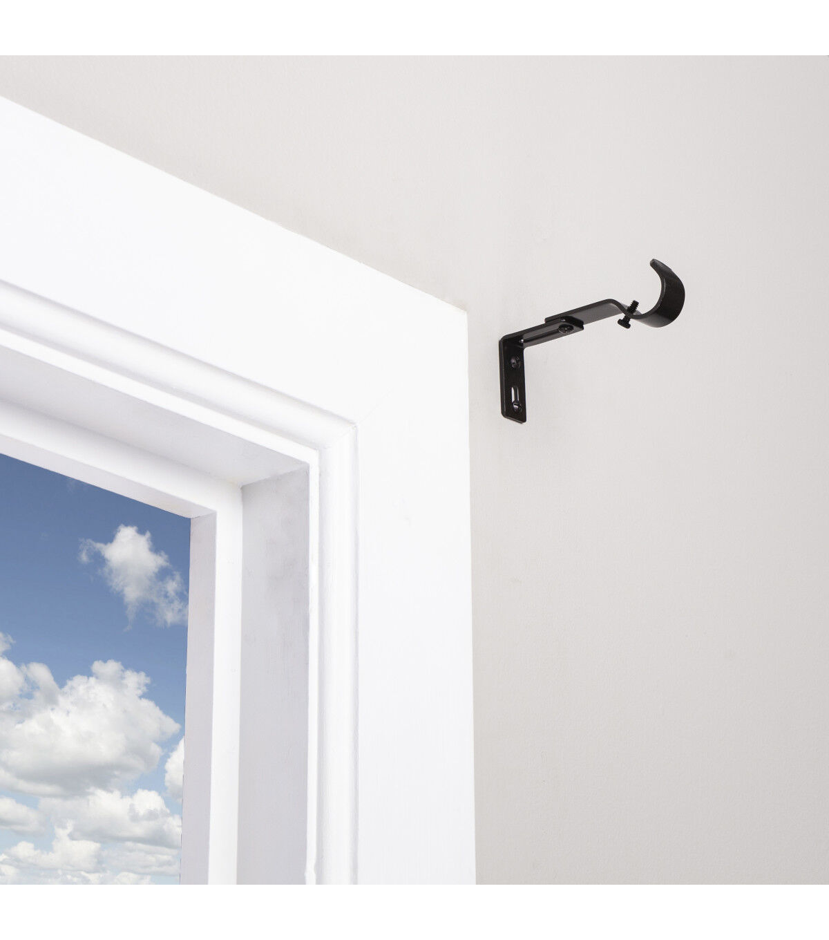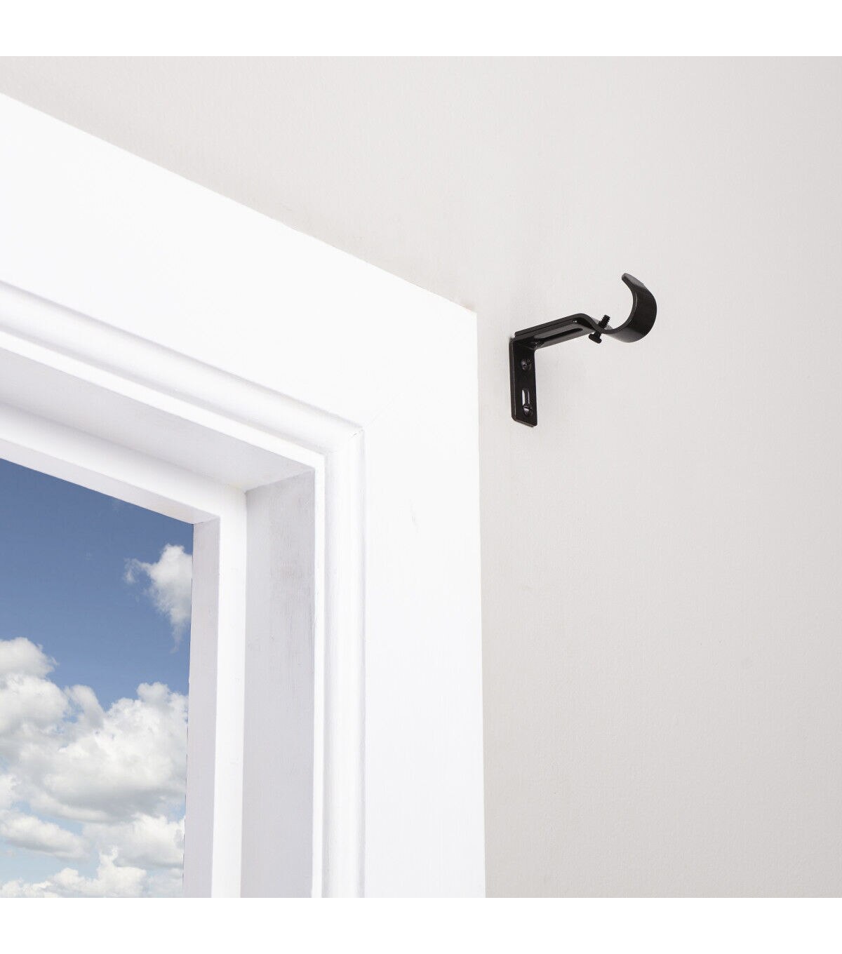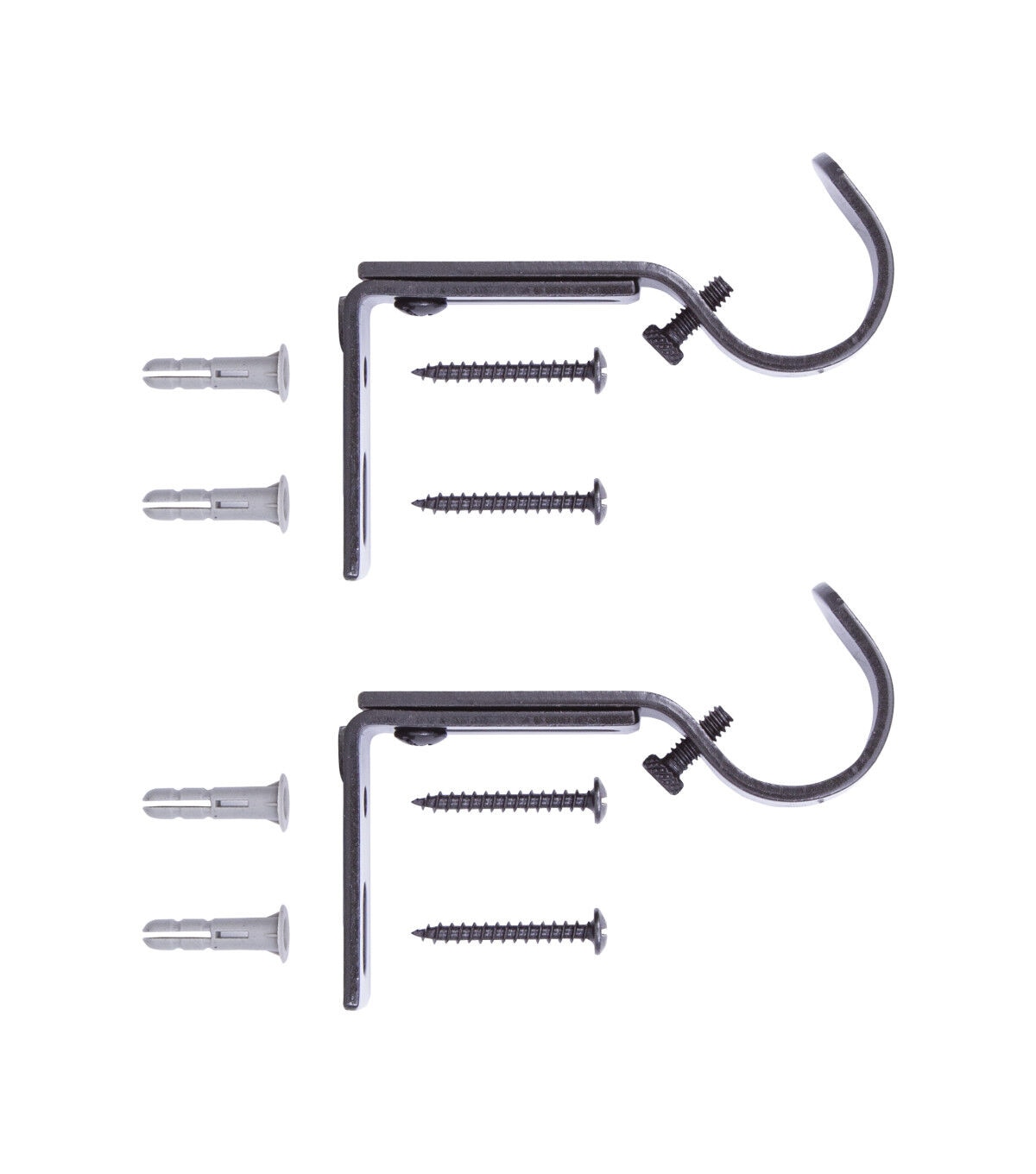 Accentuate your window treatments with the Kenney Adjustable Curtain Rod Mounting Brackets - Brown. This pack includes two mounting brackets flaunting a dark brown-hued finish and mounting hardware. You can use them with curtain rods measuring up to 1 inch in diameter. The projection from the wall is adjustable from 3.5 inches to 4.5 inches.