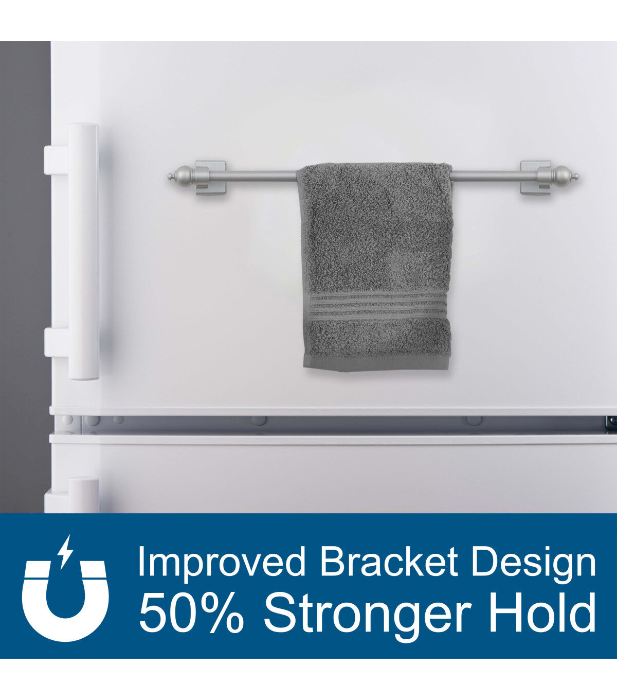 The Kenney Petite Cafe Magnetic Rod - Satin Silver will attach securely to any steel surface. This metal rod sports a satin silver-toned finish with matching plastic decorative finials and magnetic mounts. It easily adjusts in length from 16 inches to 28 inches to fit your need and requires no tools or hardware for installation. You can use it on metal doors and appliances or for hanging curtains as well as towels and other linens.