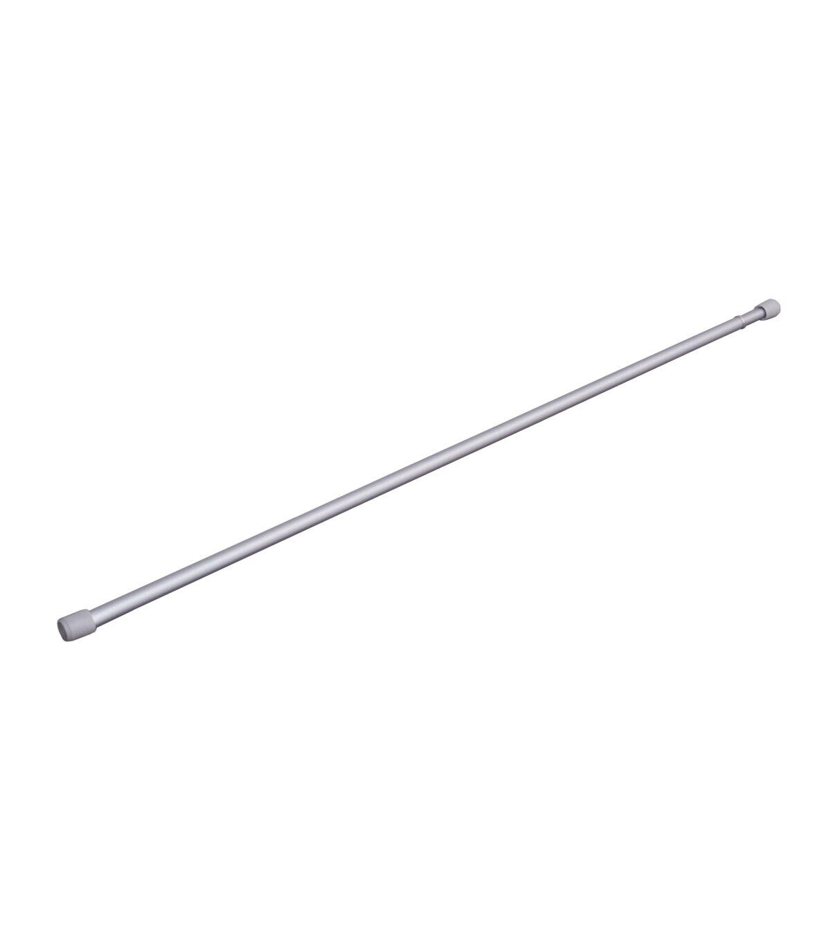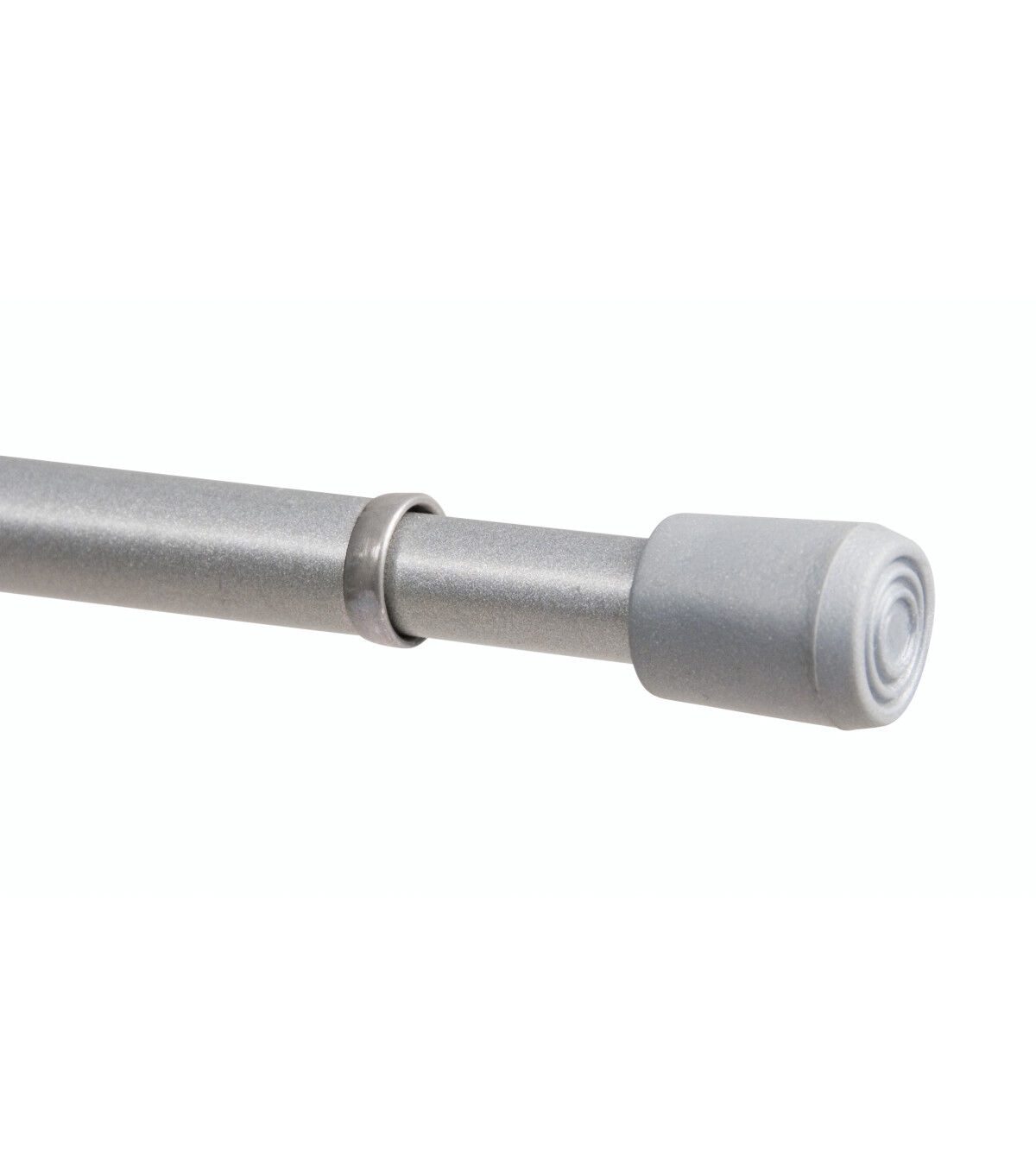 The Kenney Strafford Spring Tension Curtain Rod - Pewter is a versatile and easy-to-use solution for hanging curtains. This 0.44-inch diameter metal rod sports a pewter finish and adjusts in length. Designed with non-slip, non-scratch white rubber ends, it stays securely in place. It is easy to install and mounts inside your window casing, with no tools required. You can use it in dorms, apartments or any space where a simple solution is needed.