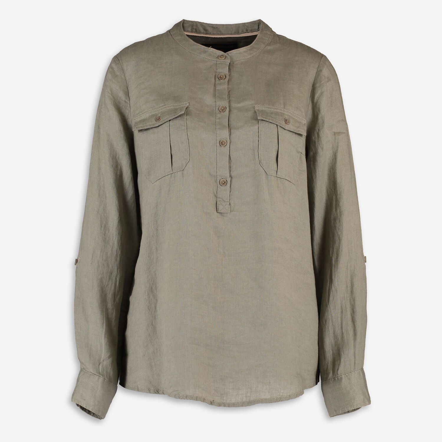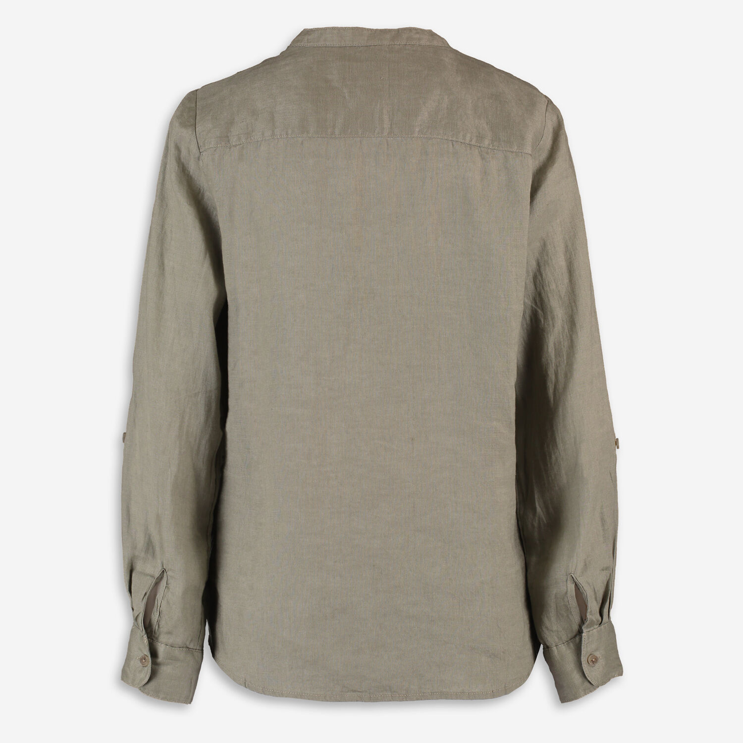 • Khaki Grandad Collar Linen Shirt