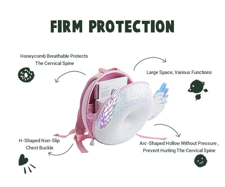 Little artists save the world!This newly launched donut school bag has a unique shape, cute and attractive, allowing the baby to grow into his own little artist in his childhood. The beloved glitter leather is used as the exterior of the schoolbag, which adds a sense of integral trend and makes the schoolbag stiffer. No matter how many things are placed in the schoolbag, it still stands upright. The breathable honeycomb design can protect children’s cervical spine, and the arc expands the interspace. It will be the best gift for children on any special occasion.