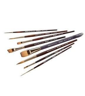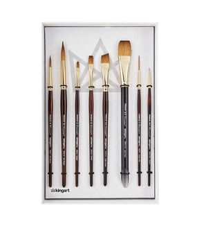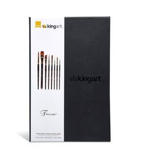 Kolinsky Sable brushes have long been recognized as the standard of excellence, a comparative benchmark of how other natural and synthetic watercolor brushes perform. KINGART Finesse is a new next generation synthetic-hair (filament made in Japan) brush that is almost indistinguishable from natural Kolinsky. It is a challenge to see the difference. Aside from the more affordable price, it is the performance of this new synthetic hair technology that makes KINGART Finesse the new standard for artist brushes. Intended for watercolor painting, KINGART Finesse, Kolinsky Sable Synthetic Blend Brushes Series 8000 can also be used for acrylic and oil paints.